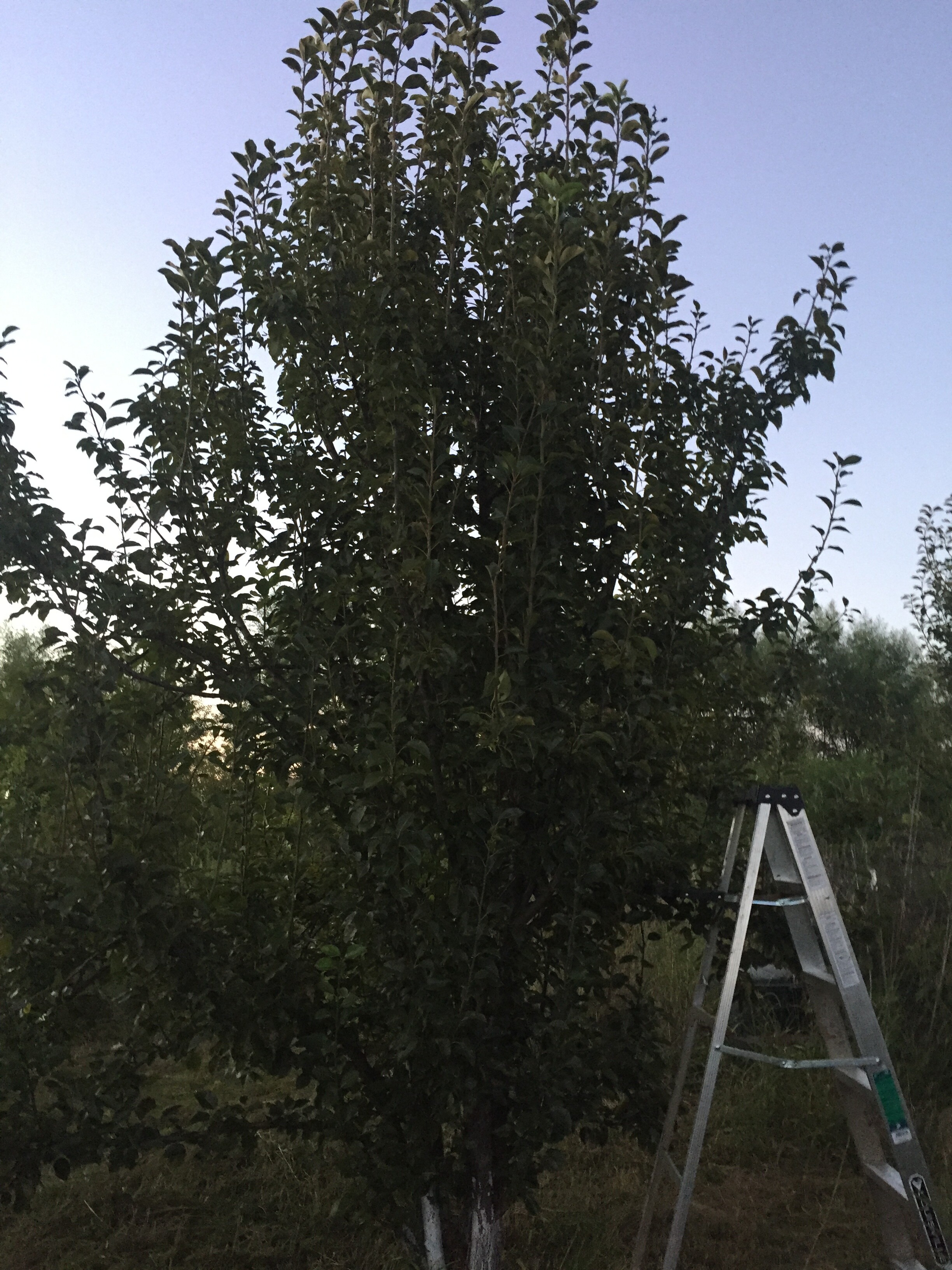 This is pear #3 which is the parent pear to the other two you’ve seen in the previous posts. This improved kieffer is at least 16 years old. This pear was never sprayed and shows no sign of fruit lost due to insects, diseases, animals, birds, etc. . Like all the pears it’s very light on fruit this year. The total yield was 1 1/2 5 gallon buckets of pears.