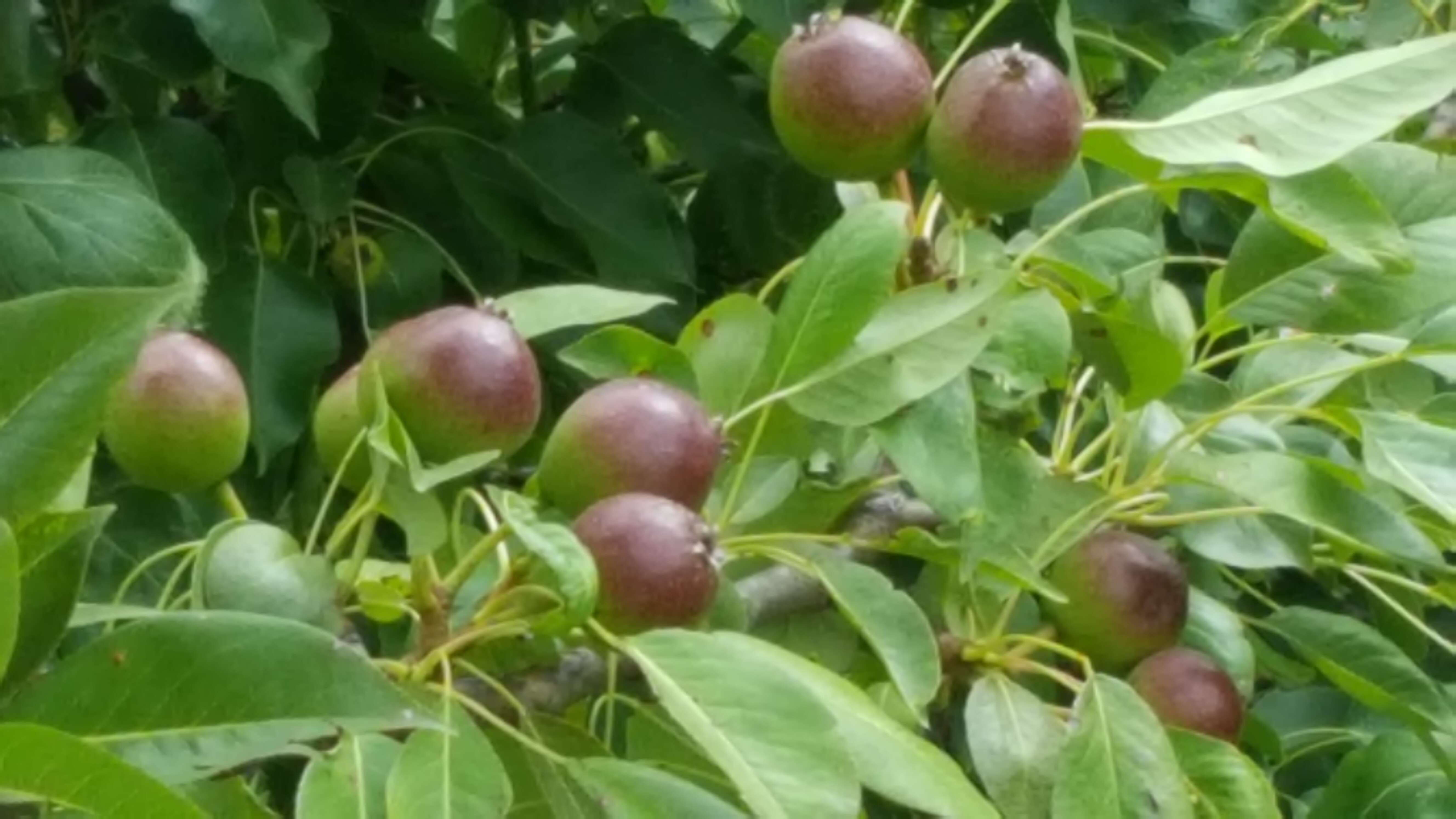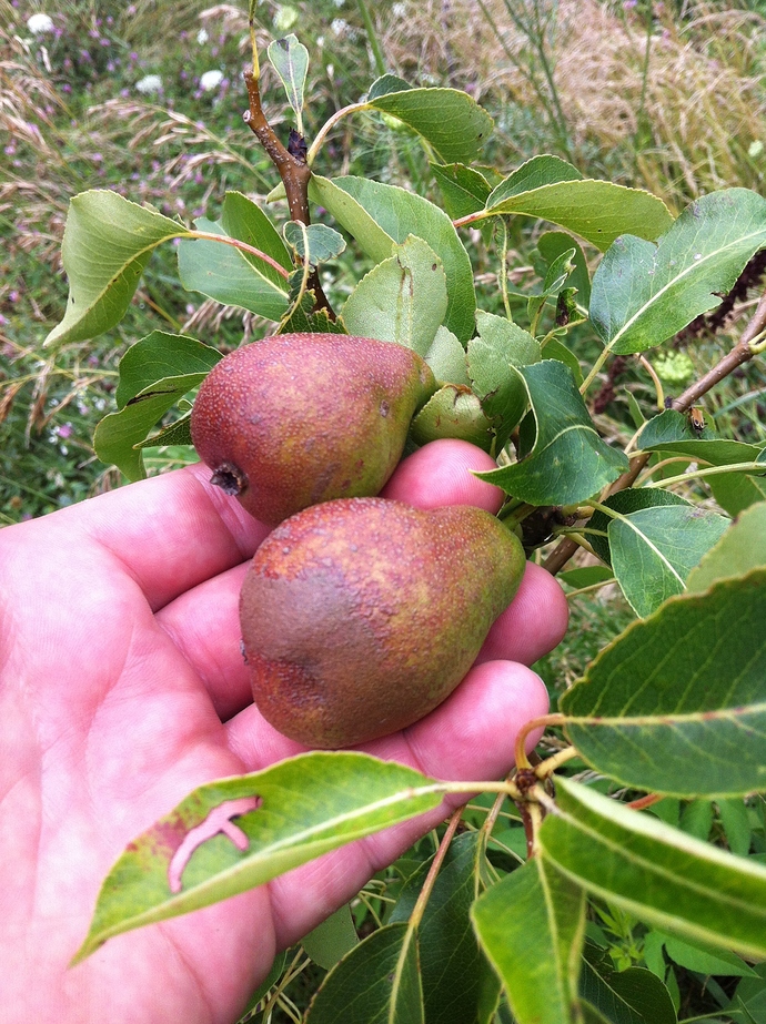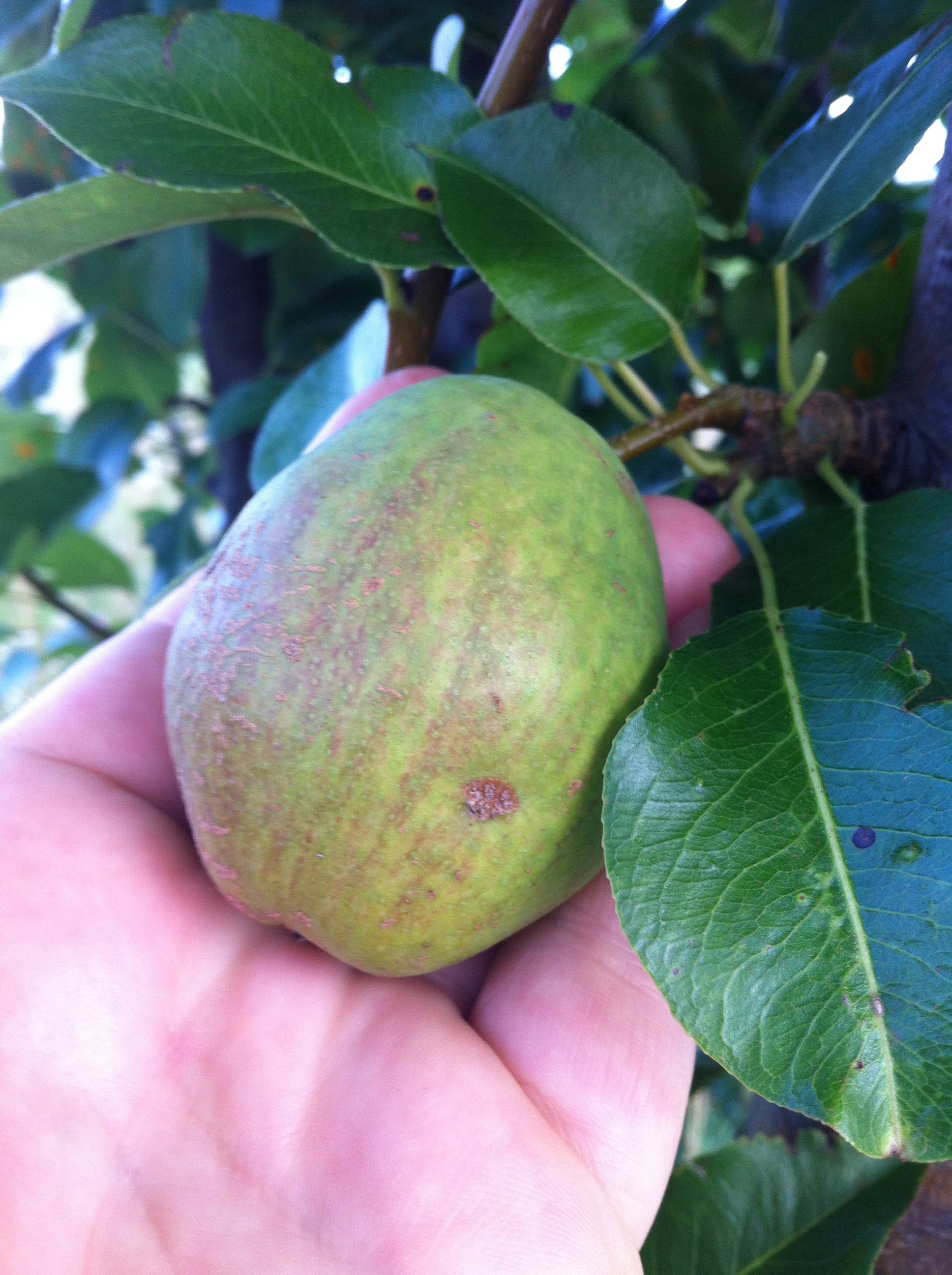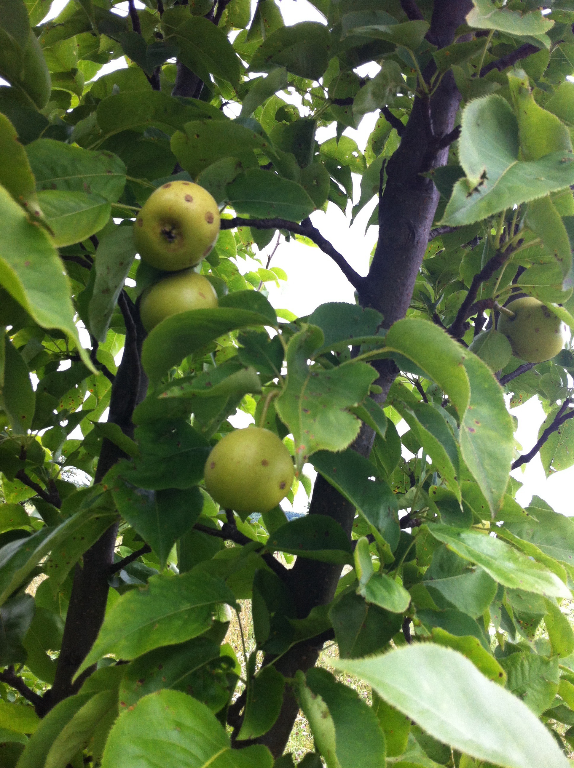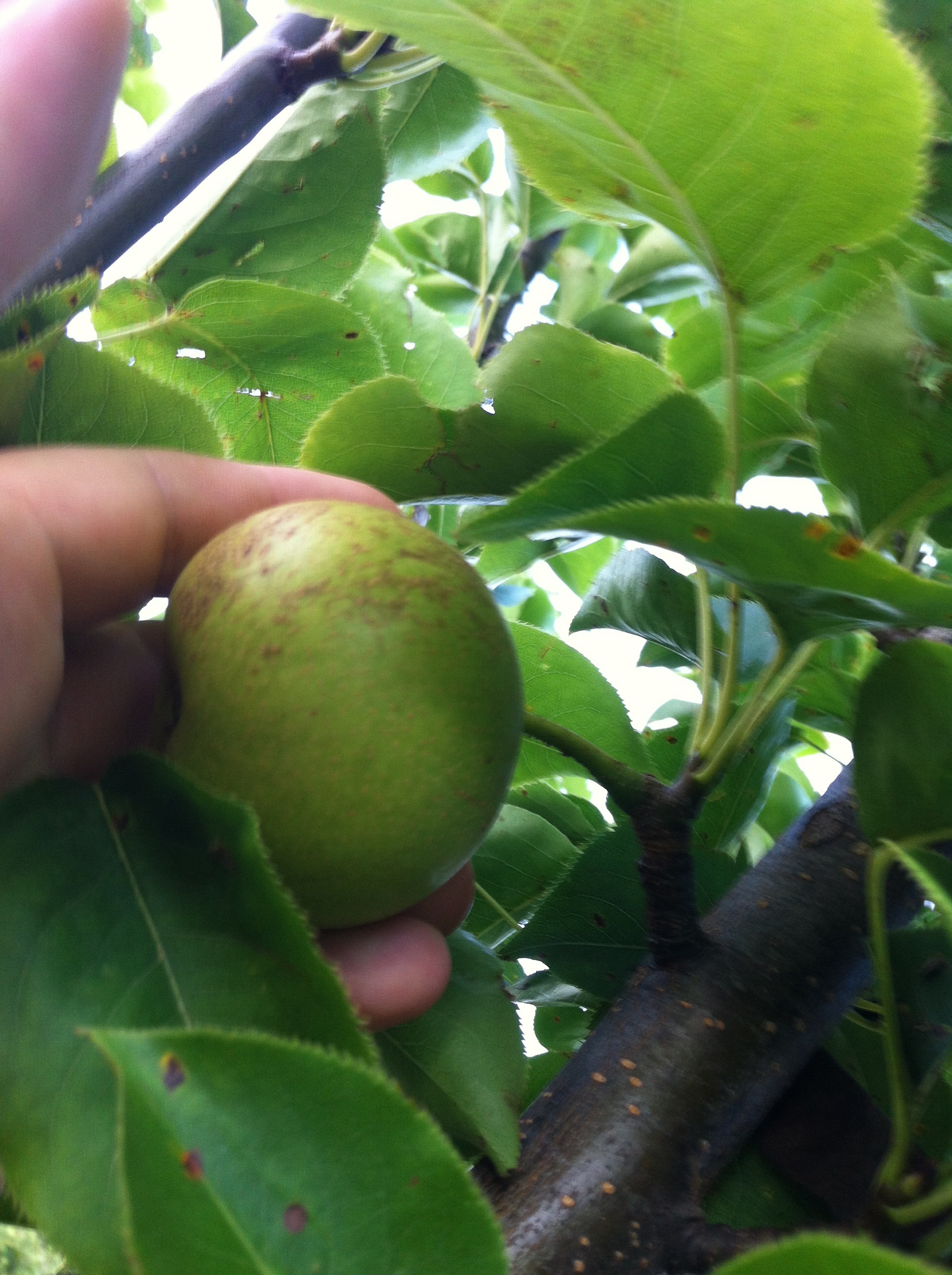 Getting closer to harvest and the pears are taking their time sizing up. There are some pears there for sure but the crop has been greatly reduced. These are a few of the pears.
