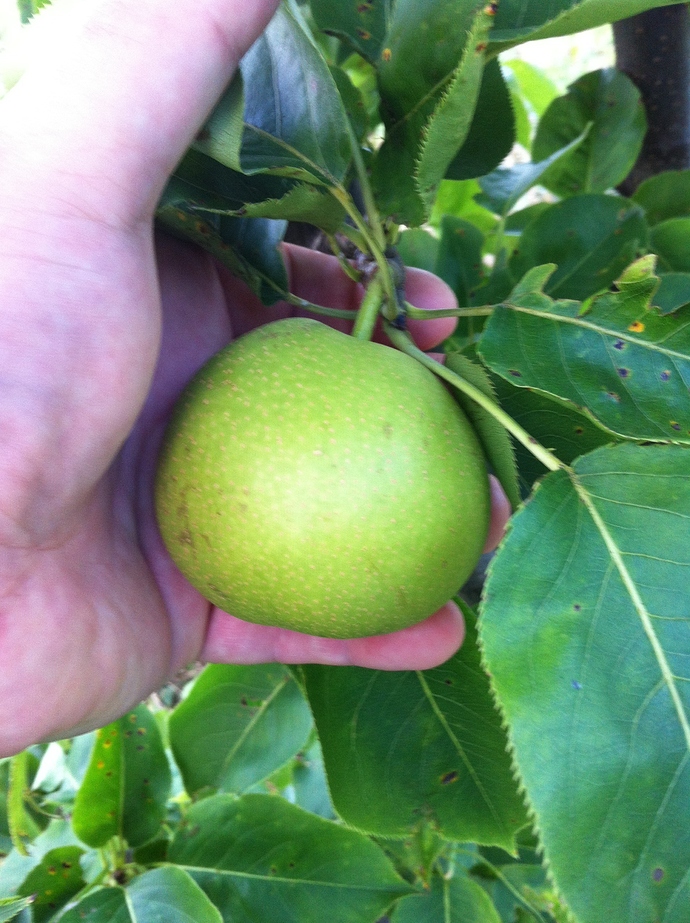 .I walked through my orchard’s bock of pear trees, and am now in anticipation for the following which have finally set fruit- Summercrisp, Buerre Giffard, Beierschmidt, David, Staceyville, and a couple others. These are mostly 7 years in the ground here on pyrus comunis roots.
