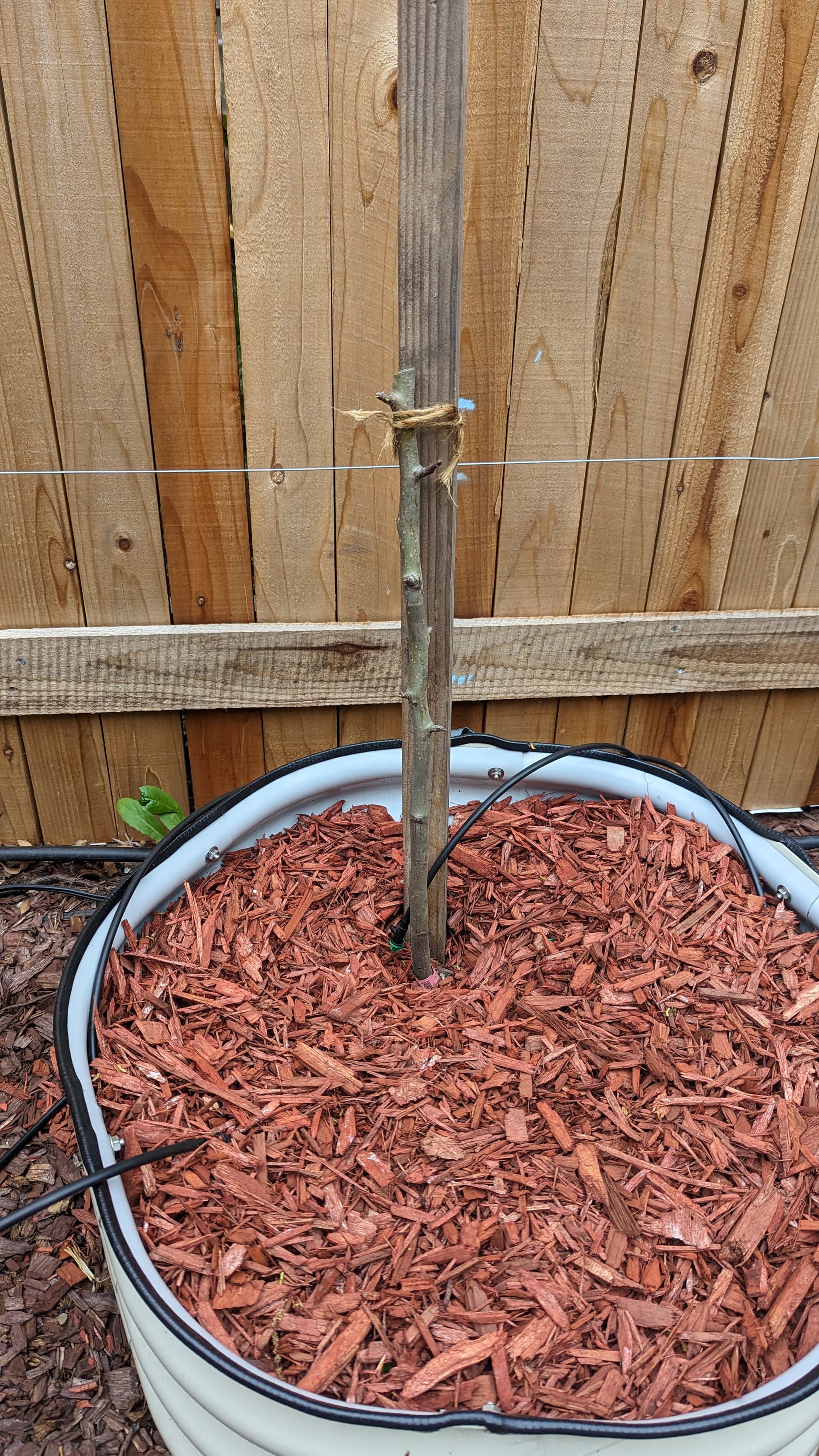 @39thparallel The Asian Pear rootstock is Callery, and the European Pear rootstock is OHxF333. Those are not containers, they are bottomless. We needed to amend the soil (with compost) in the planting area…that is why I used those raised-bed-like borders.