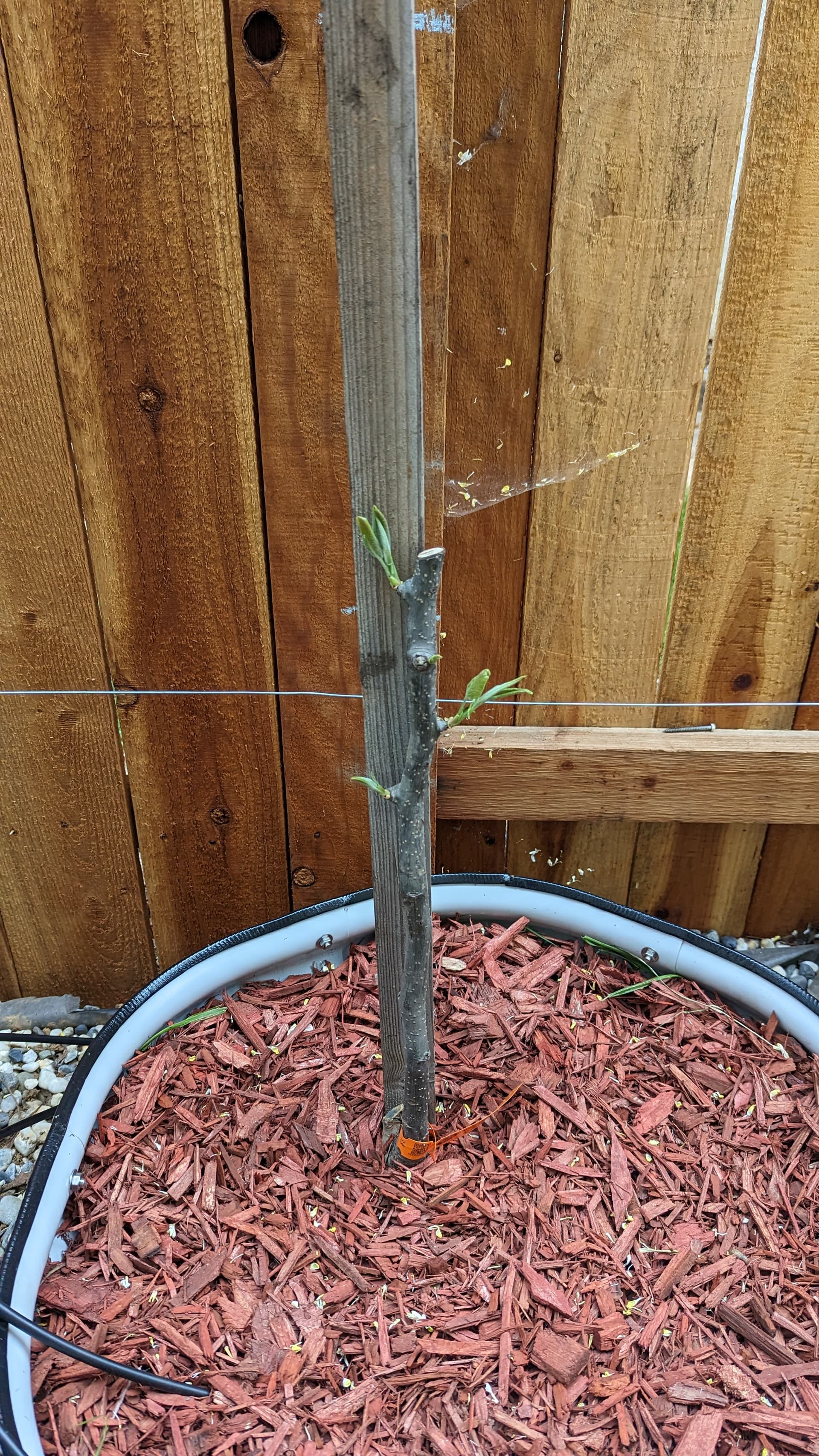 The trellis and wires are set. Trees planted and pruned! It has been a month. They are pushing buds from last week.