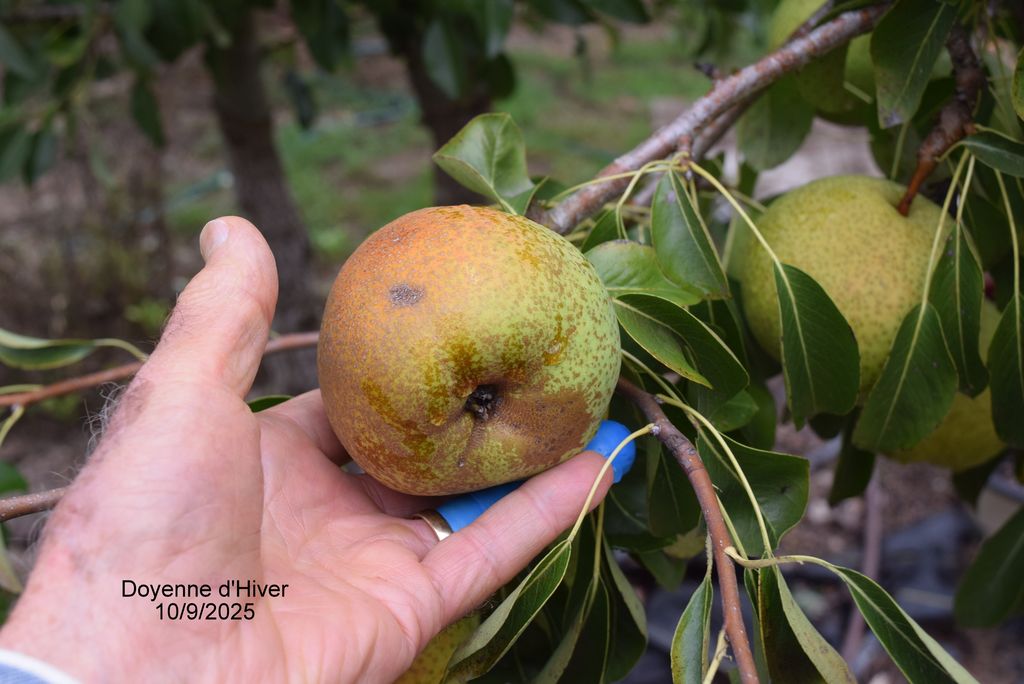 Beurre Gris d’Hiver Nouveau was picked on October 3, 2025. A few had fallen from the graft, and all released without difficulty. They were firm with very few having any defects.