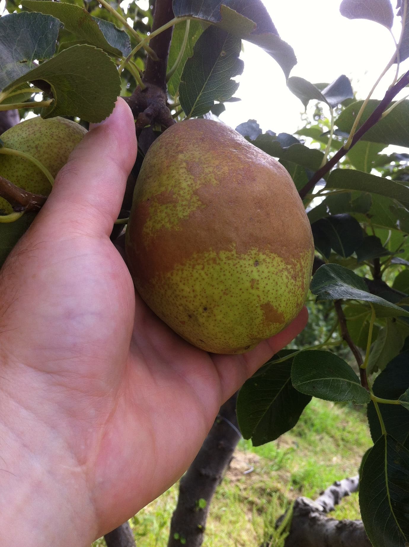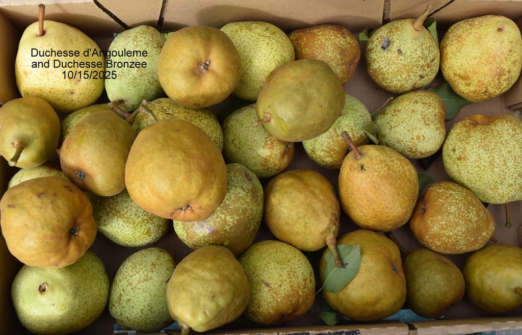 I really like Duchess D’ Angoulme. It is a heavy producer with a good flavor. It is not in the class of exceptional pears though it is one of my favorites. I have seen them grow to near 2 pounds and they can easily exceed that.