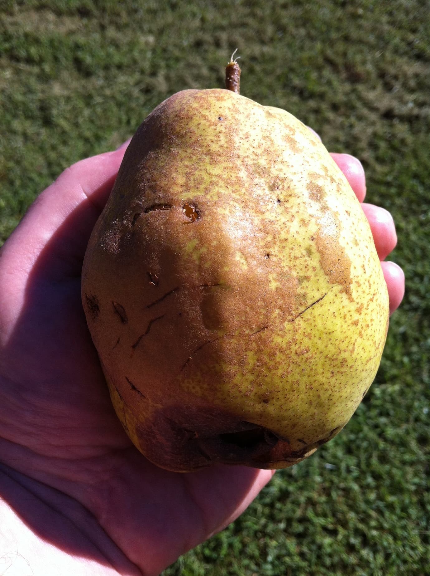 Duchesse d’Angouleme can be a huge pear, but as grown by me are usually normal-sized.