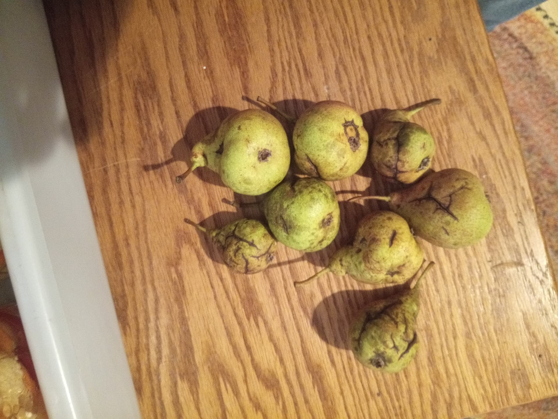 There was a fair amount of curculio damage this spring, I don’t know why but in our area they just absolutely love pears, more than anything else seemingly. Also we had a very wet summer with lots of oscillating temperature extremes. '50s for a week and wet, followed by '80s for and week and wet, and so on. As you can see the fruits failed to grow large, and cracked horrifically. Any ideas?