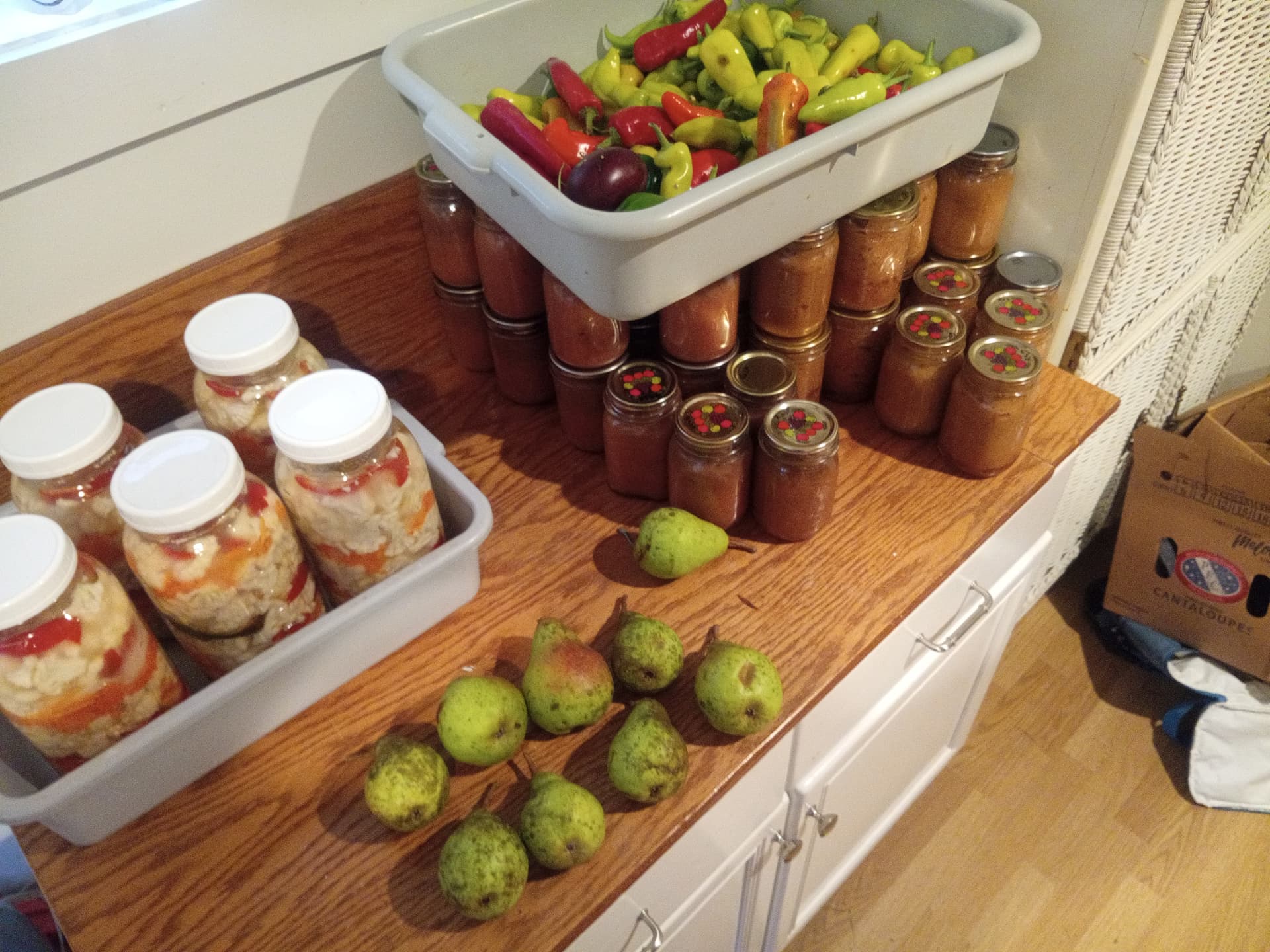 I started picking most of the Abbe Fetal pears around 3 weeks ago because of the high heat we had been having. Once they start getting a little soft they get really mushy 2 to 3 days later. So perhaps the shelf life is maybe, maybe two weeks before they need to have something done with them. Perhaps some pear butter. I’ve never made pear preserves before but I am not sure they would hold up to being a little chunky being cooked like that.