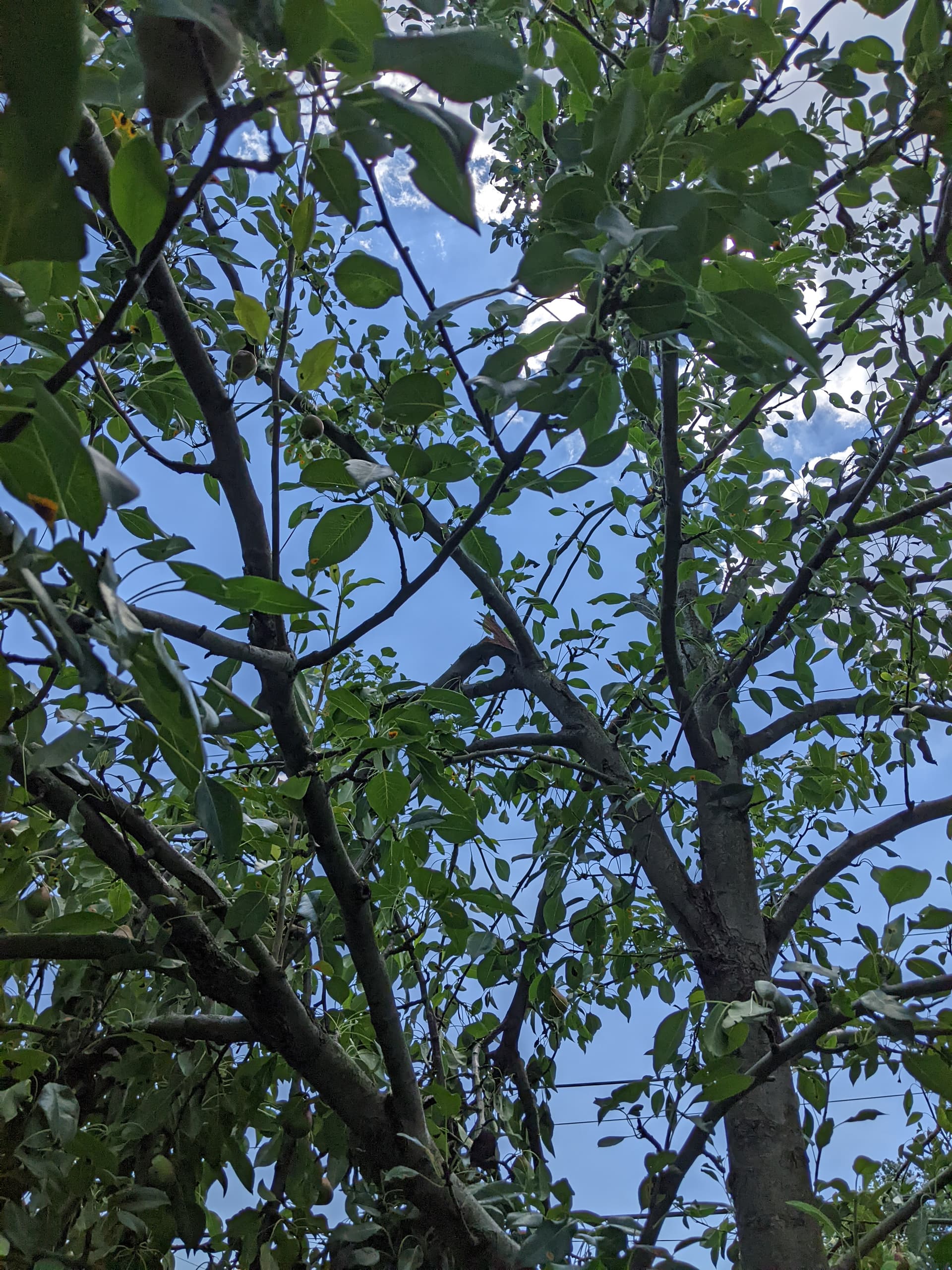Oh, it defintely hurts the neck when you are looking up inspecting the tree for any amount of time. The lowest set of branches (at the trunk) are at face level (I’m 5’ 2’'). I didn’t mean for it to get so tall (actually, I think it’s a dwarf), I always thought I’d prune it Dave Wilson style, but it was meager looking for the first few years that I forgot about it. When it started to fruit noticiblely it was already tall and the branches were all V shaped upward so it I ended up letting it go.