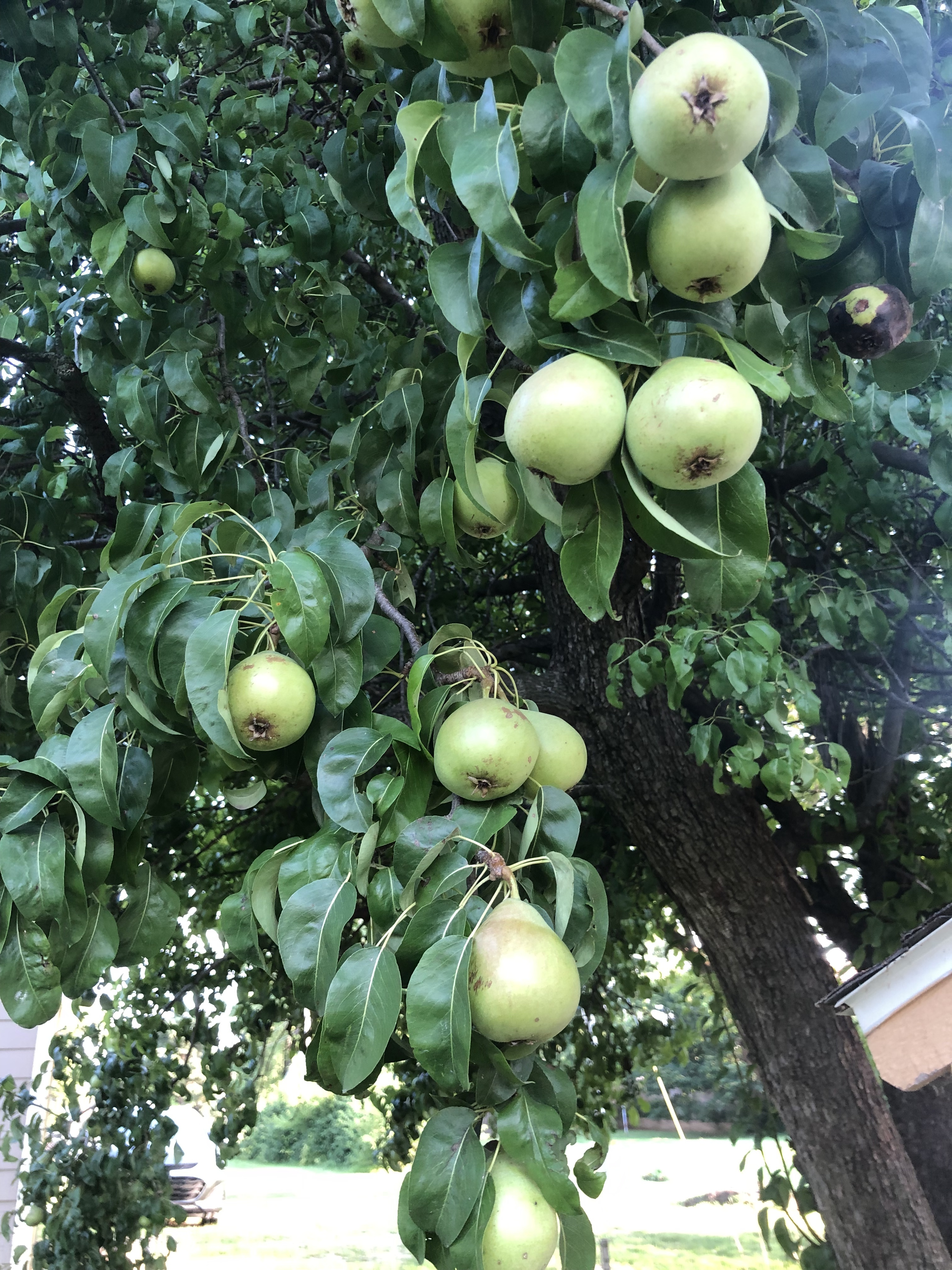 A friend of mine a few blocks away moved into a house this winter and he has a ~25 foot pear in his backyard. You wouldn’t know it was there unless you were in his back yard. He told me to come pick all I want when I think they are ready and it is loaded from top to bottom. Any ideas on variety?