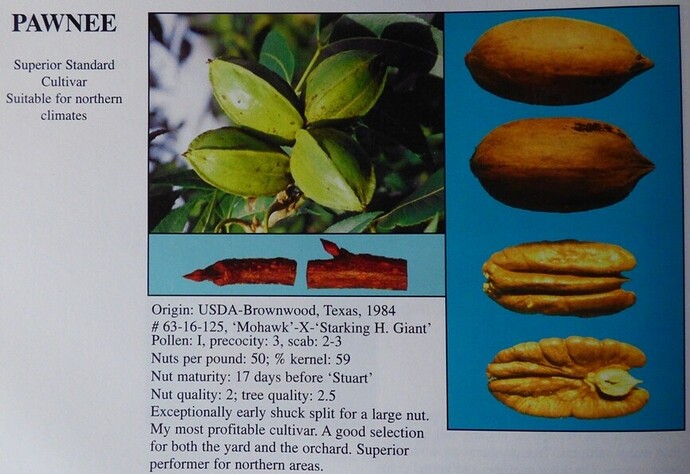 Dax, my pecans are indeed smack on with those pics. The Colby do vary significantly in size, and I don’t find their flavor to be as good as the Pawnees or Peruques, so of course the Colby is the largest and most productive of my trees so far. I have many wild pecans, and I will say that their flavor can be very good, but they are mostly too small to tempt me to harvest them. I crack a few, but they often do not crack out easily. At least they serve to pollinate my grafted trees, and I do have some named seedlings I got from the Conservation Department that will be coming along, hopefully before I croak. It will be interesting to see if any of those happen to produce decent nuts.
