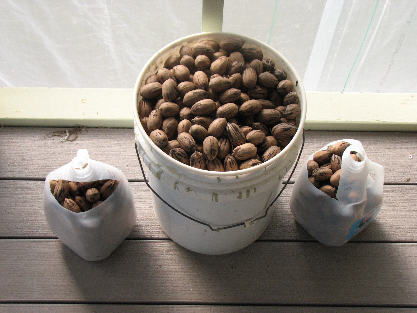 Seven gallons of Desirable harvest today after 60 mph winds. That’s 11 gallons so far or about 52 lbs from one tree. Maybe half of what’s on the tree. Tree still has leaves so hard to tell. I’m usually picking up eatable nuts until March.