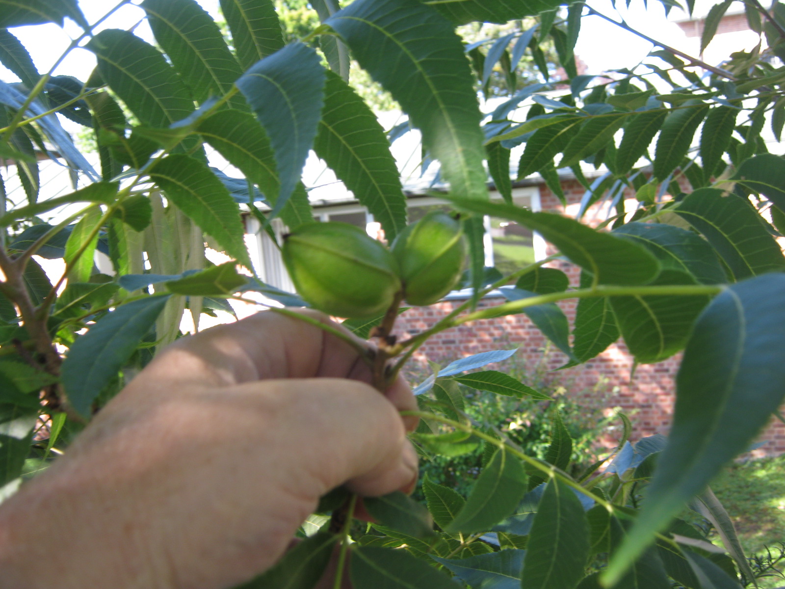 My two producing pecan tree have grown too much to simply walk up to and shake a lower limb to cause nuts to dislodge from the casings. I can see why commercial growers spend the money on machines to shake the larger trees. The nuts at the top will probably rot otherwise.