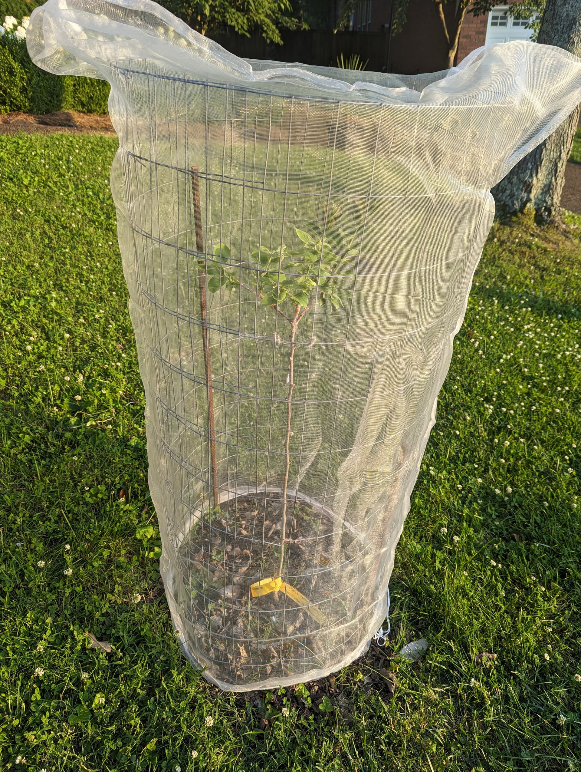 The cicadas are damaging a crape myrtle next to my newly grafted persimmon. They don’t seem to have any interest in the persimmon but I decided not to risk it. Got some netting as insurance.