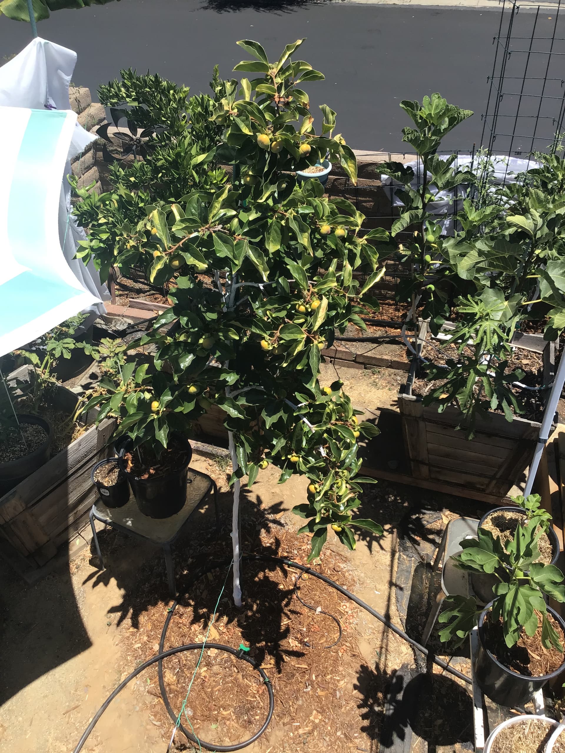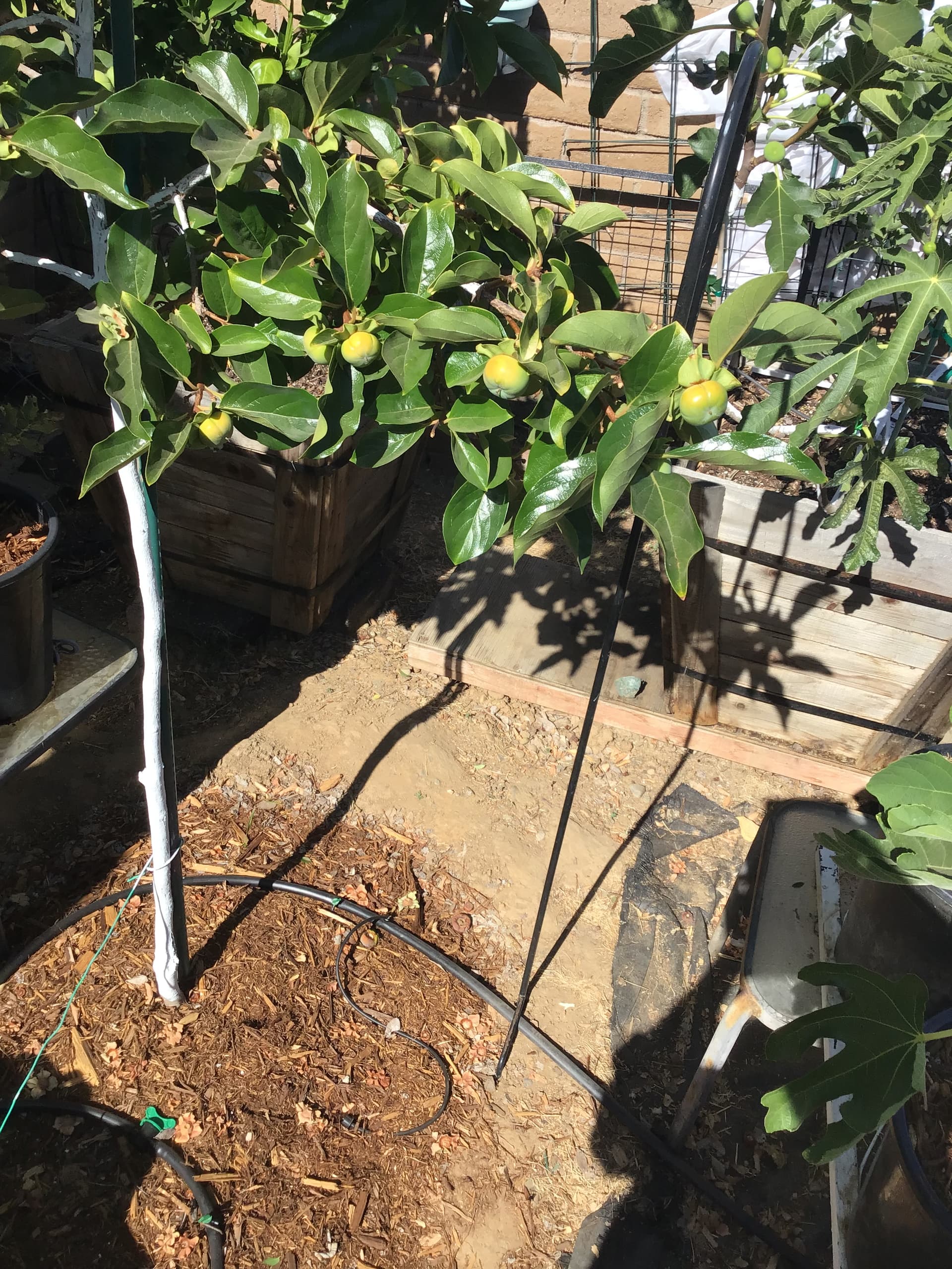 I used a wrought iron plant hanger and it seems to work pretty good for now. I got the tree about 3 seasons back in a 15g and put in a 48g redwood box. There wasn’t a lot but they were very tasty. I’ll show a pic below. Maybe in ground they will sweeten up a little sooner and better. I think your correct though it was around early Nov. according to the dates on the pictures.