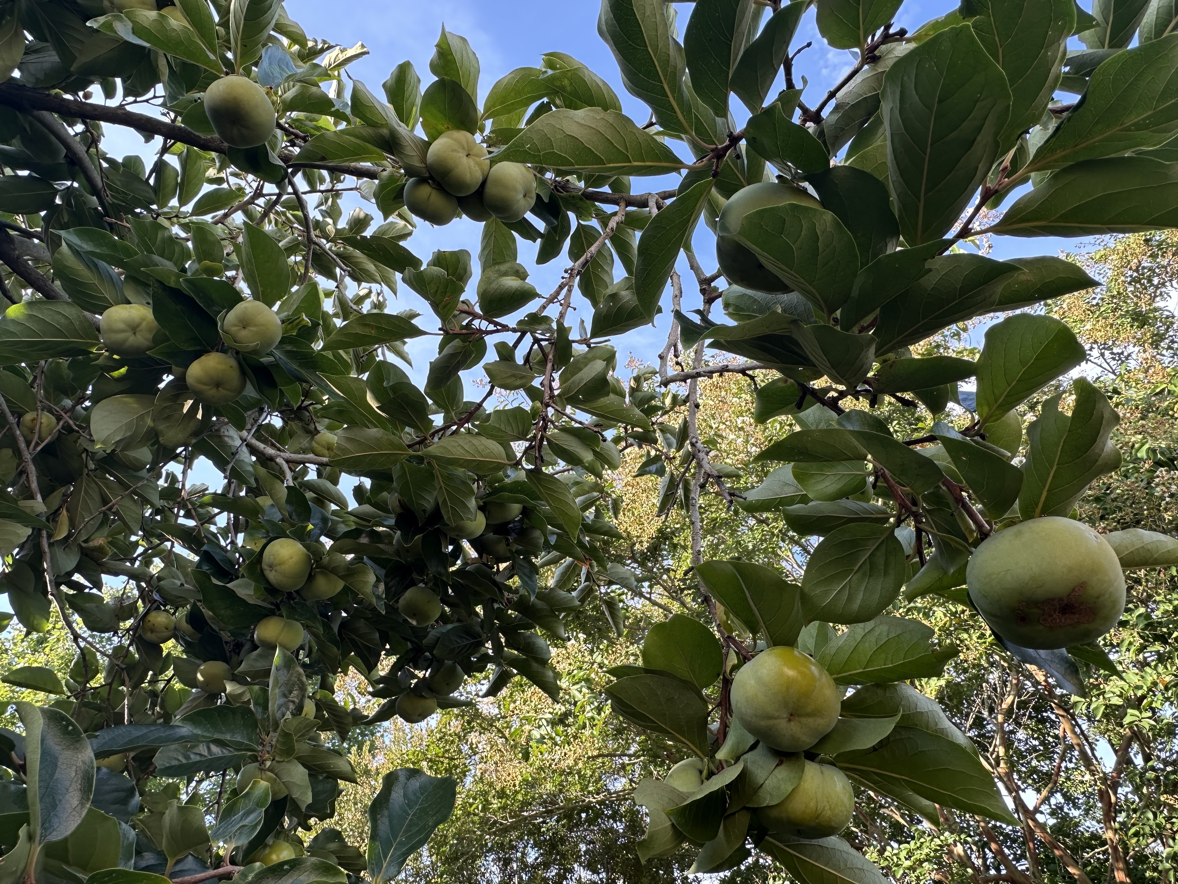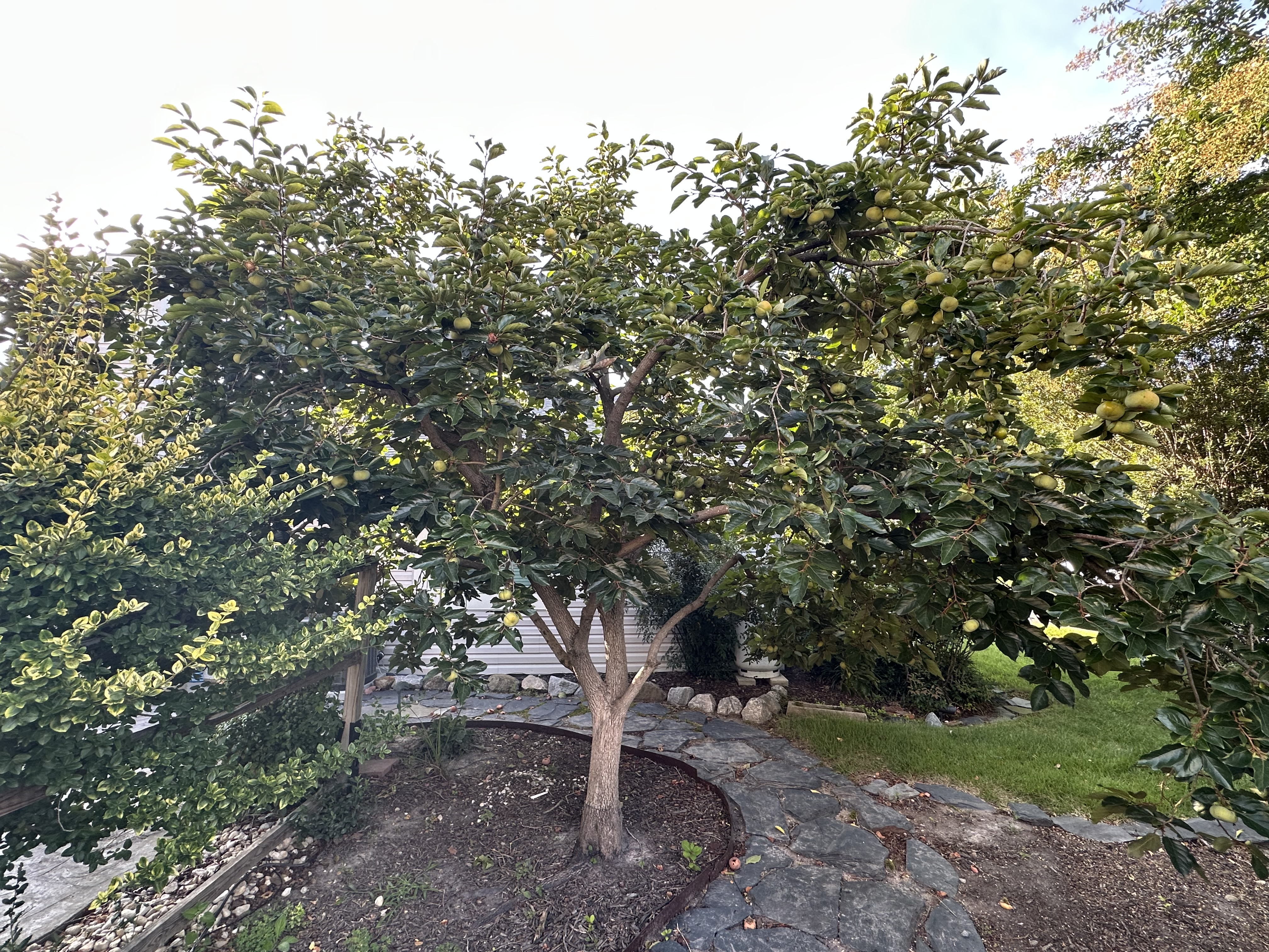 My mom moved into a new place in VA beach and she has this amazing persimmon tree in her backyard, totally loaded! I can see a graft union, but what I like most is the size. Anyone know what rootstock would keep a persimmon this size? Not ripe to taste yet but some are getting close.
