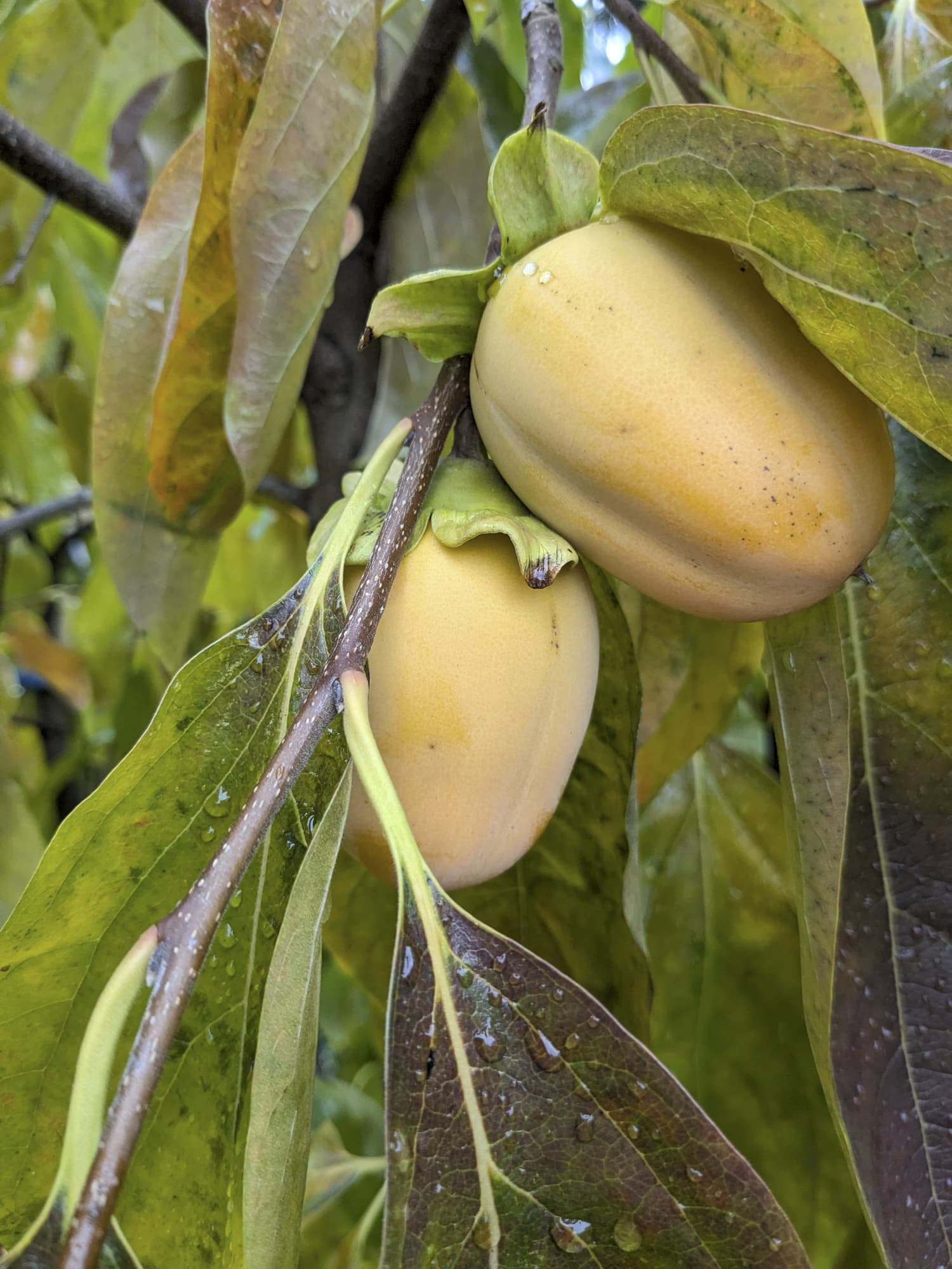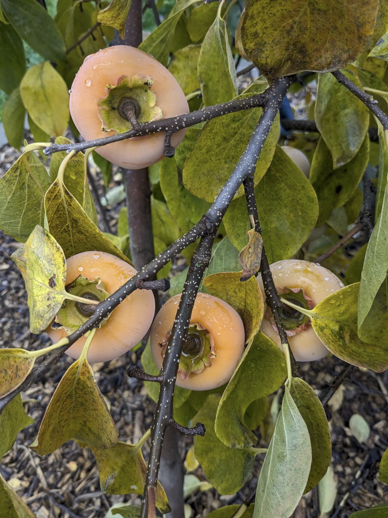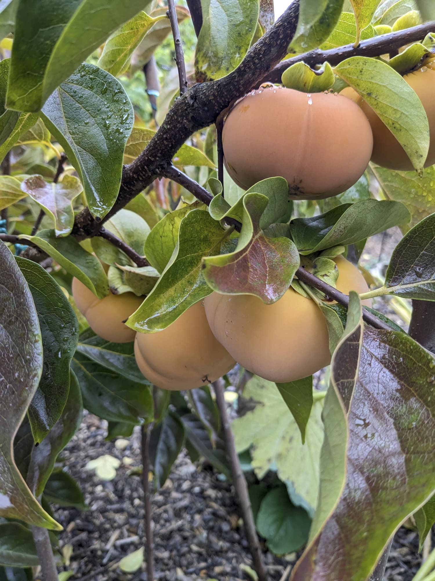 At this point, most of my fruit is mostly orange-ish; my Saijo is probably the least ripe with a few of the fruit still partly green (though most show little to no green).