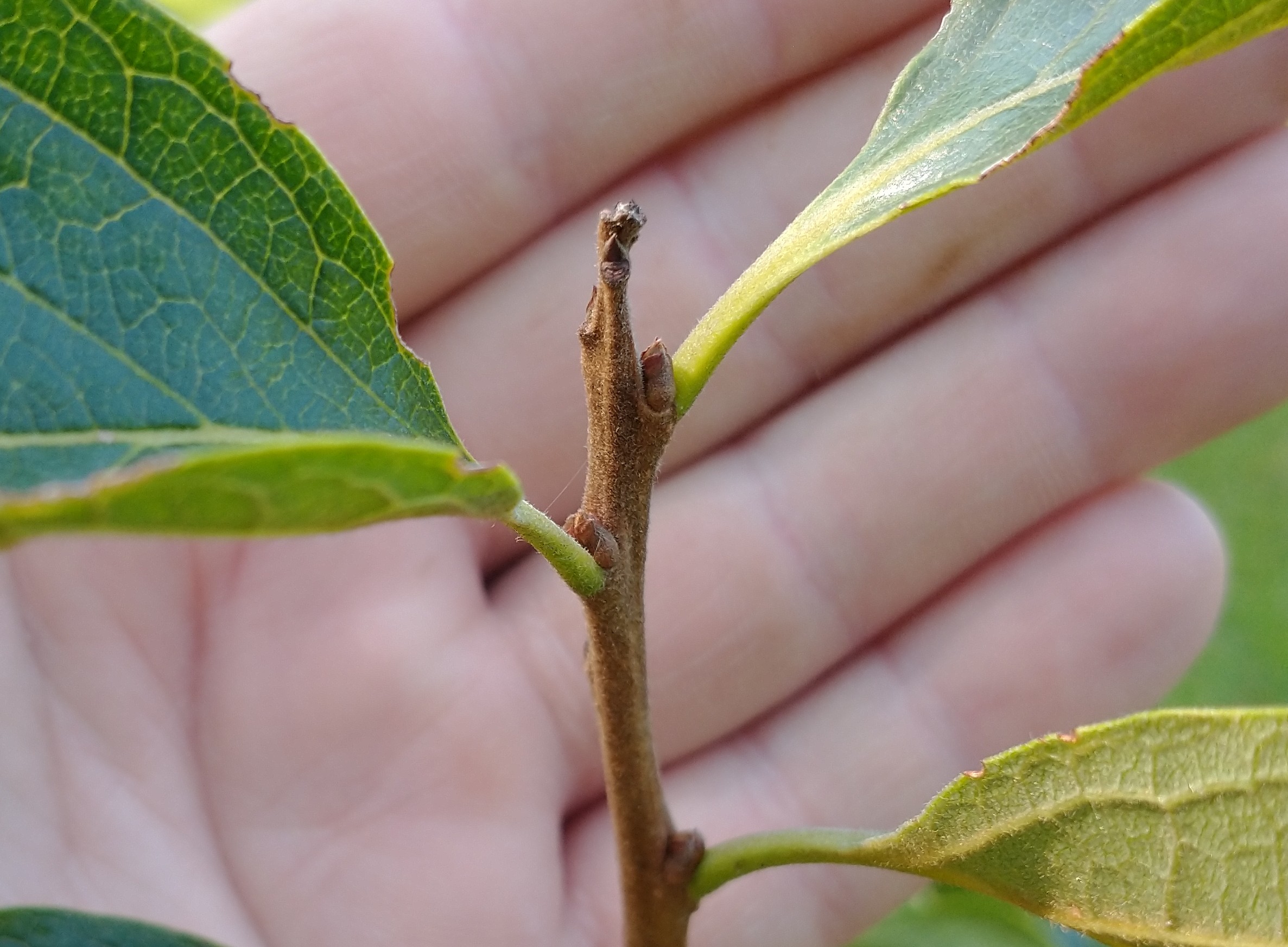 A lot of my persimmons lose their tips due to bugs. The swollen bud below will take over…maybe even this season. My persimmons usually have two solid growth spurts a season.