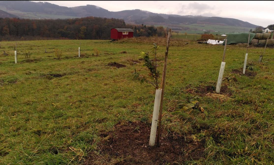 Went for a stroll in the young orchard, stomping on mouse holes near trees, a little weeding and looking into tubes.