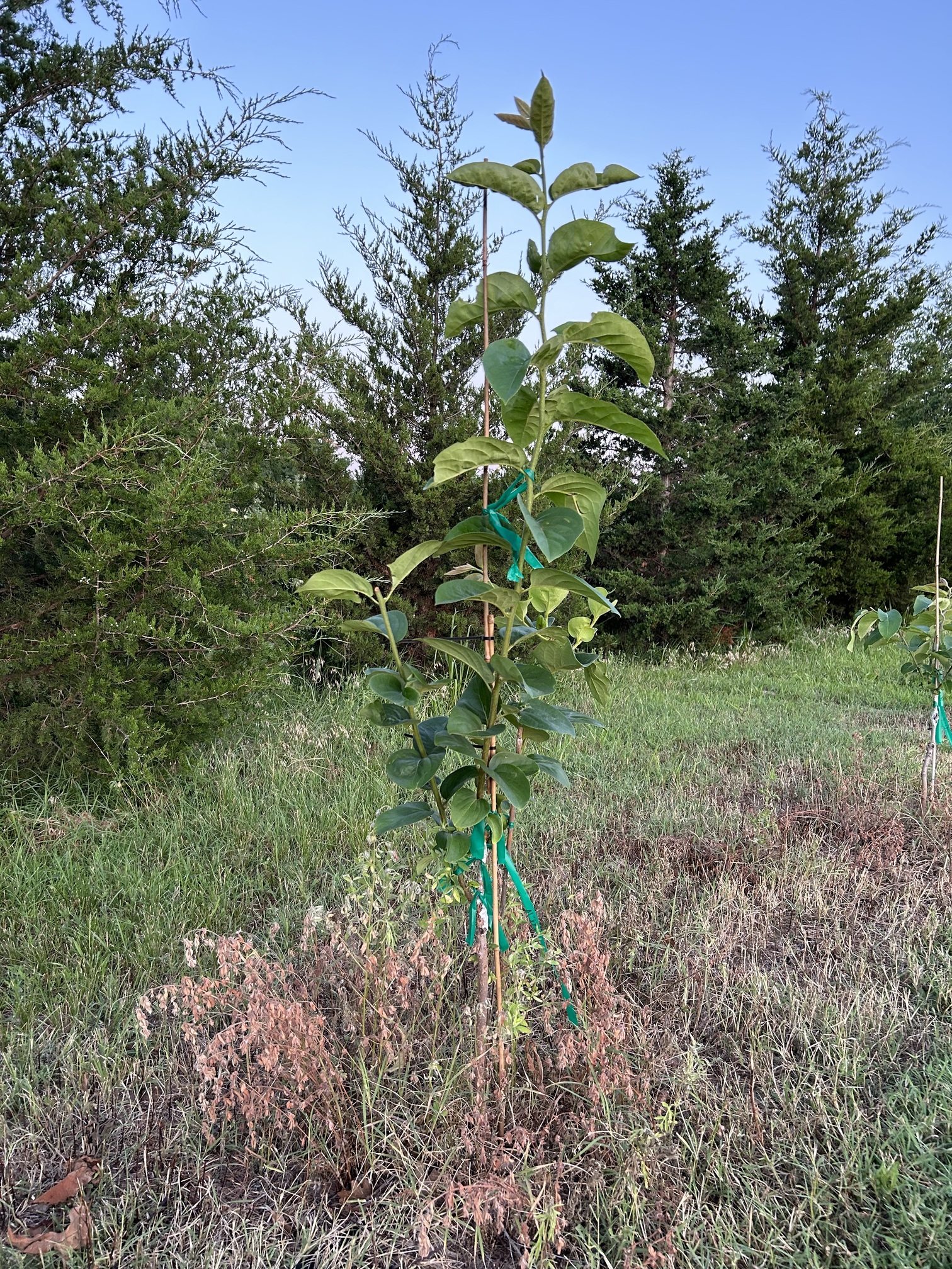 Thank you @Fusion_power and @jrd51 for the suggestions! I don’t have a lot of deer pressure now but they pass through at times and with the added persimmon food source I could see them becoming a problem, so I think I will plan accordingly! I will make sure it is loosely staked to support the new growth. We do get wind and storms. Head the laterals and eliminate those this winter. Head the leader this spring and choose some scaffolds higher up to avoid deer browse. I’m in zone 6b and we have some temperature swings so hoping JT-02 can pull through!