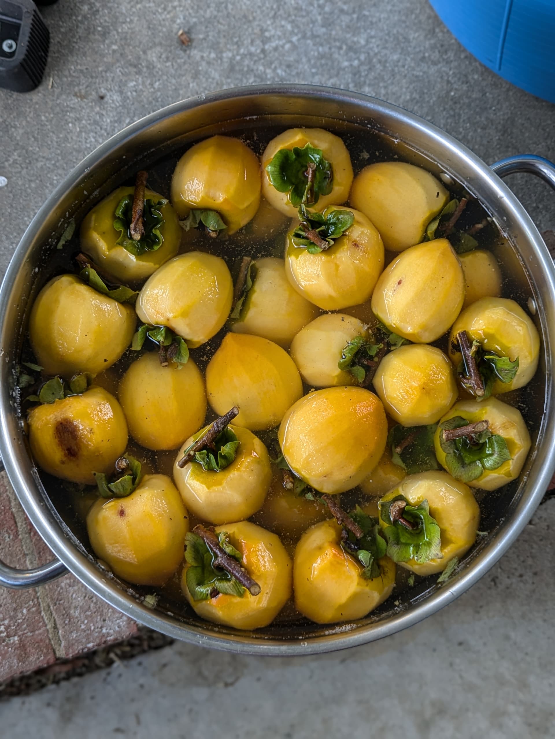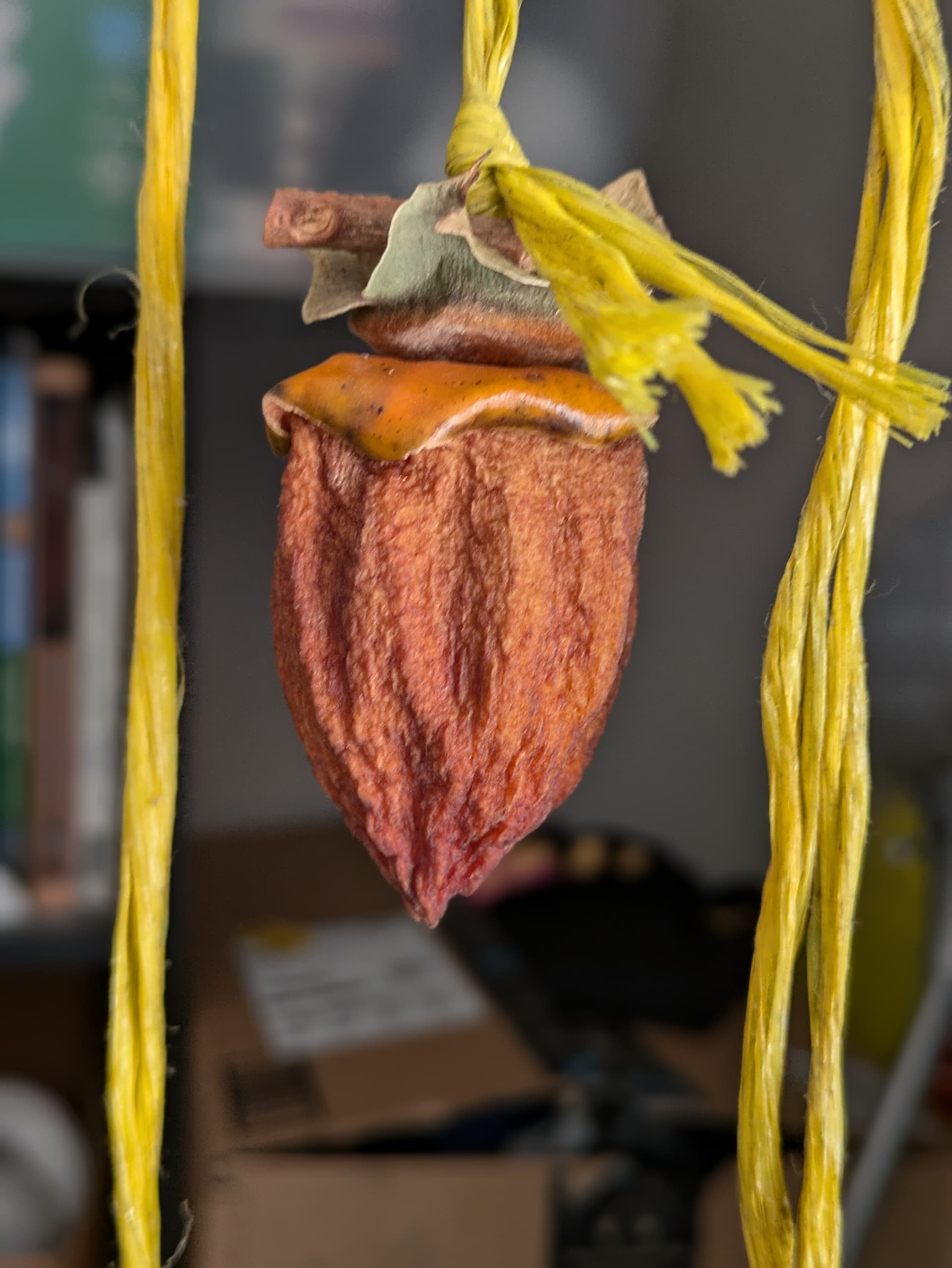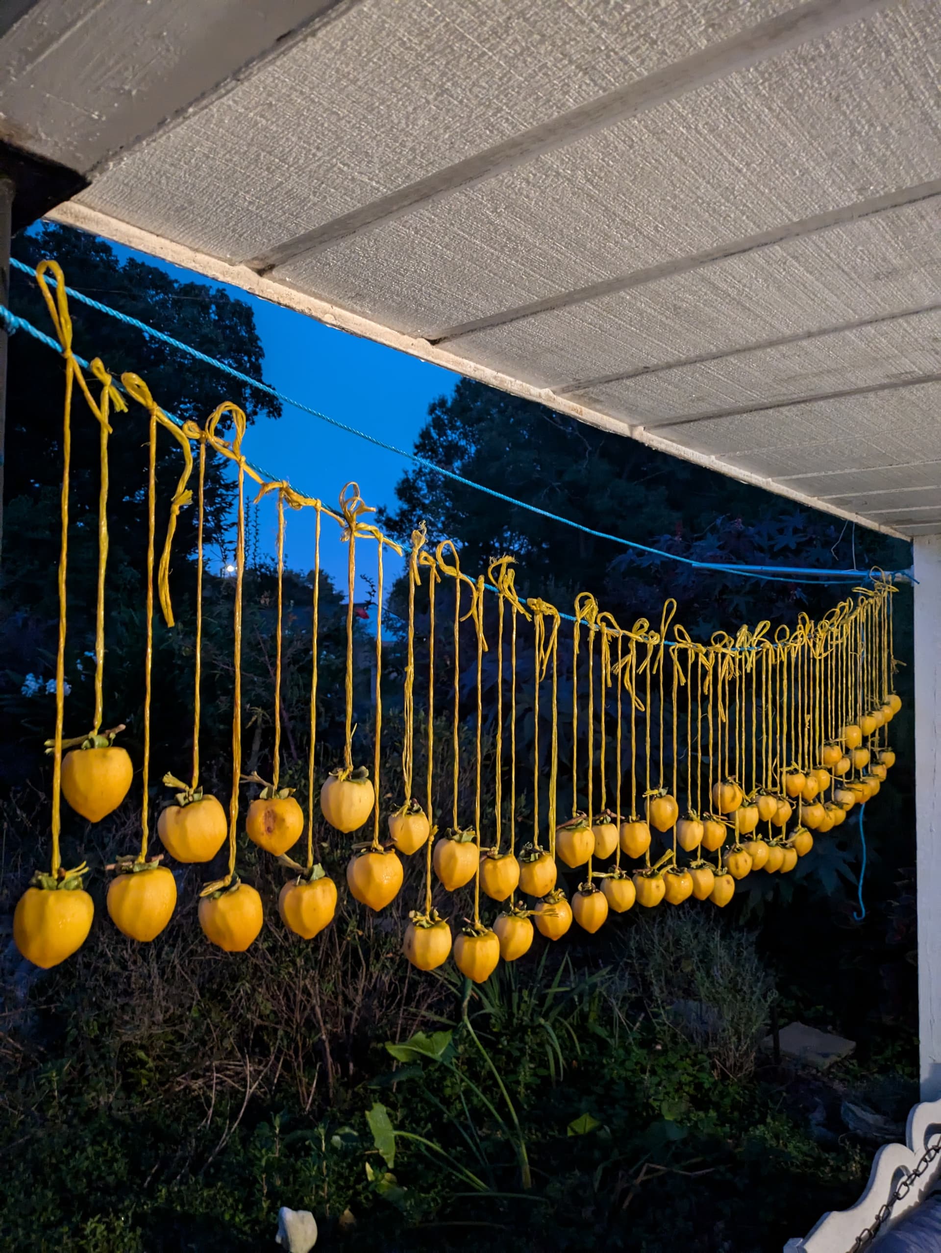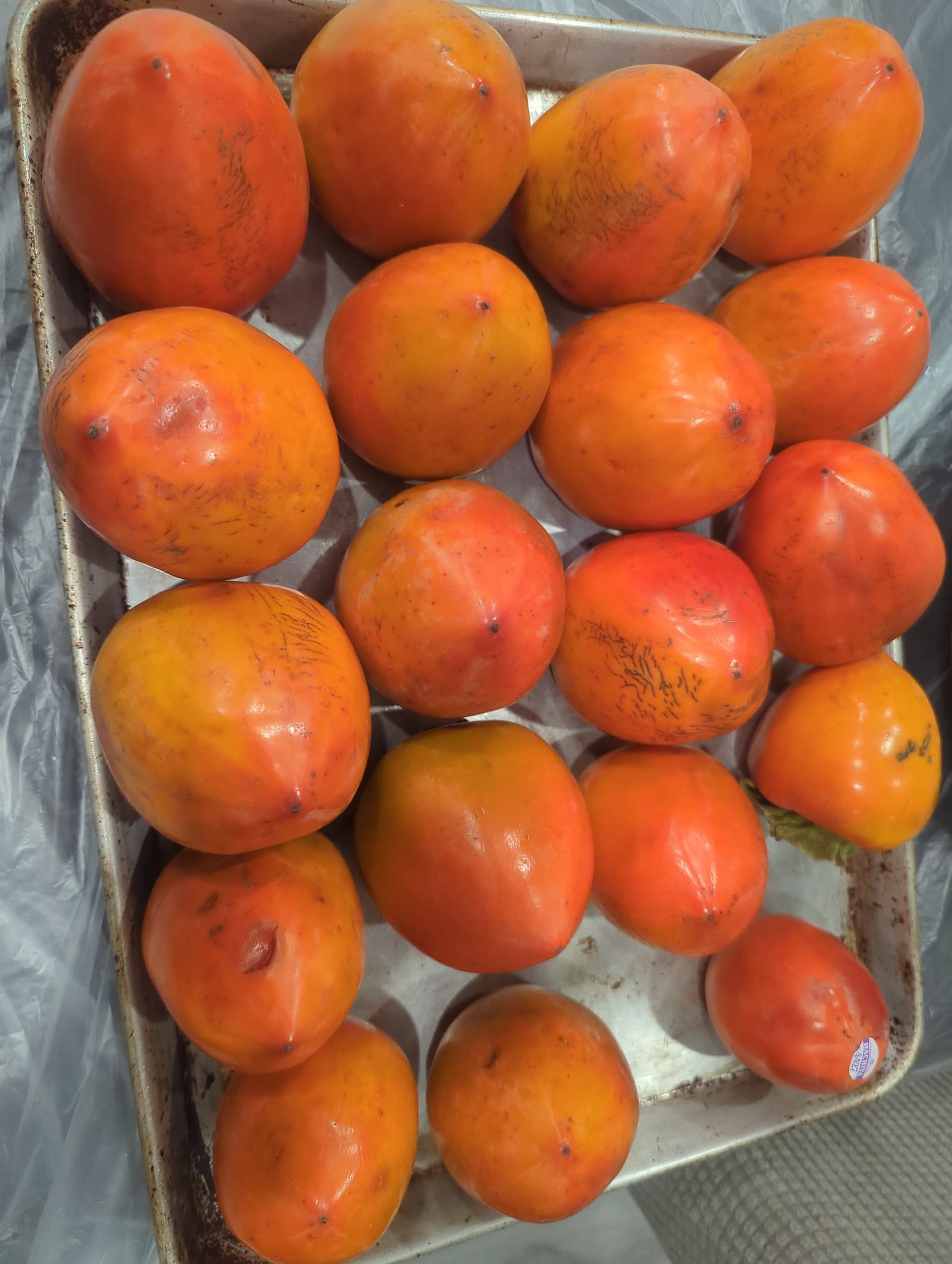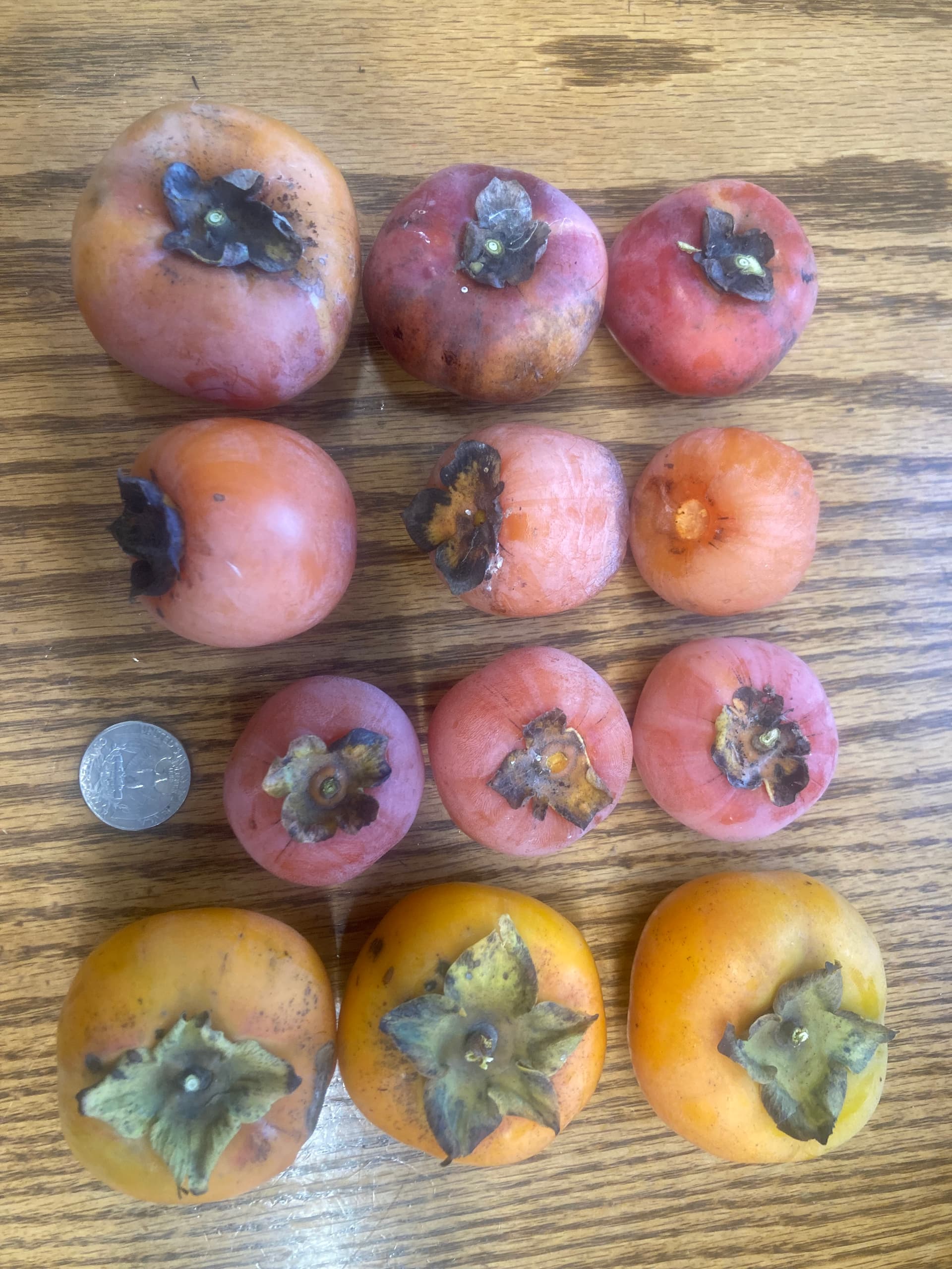 @PharmerDrewee inspired me to try hoshigaki for the first time this year. I used unpollinated Giboshi because they have an acorn shape without any lobes that makes them easy to peel. I started them outside on my porch on October 6, but the yellowjackets started carving chunks out of them so I moved them indoors after the first week to finish. Most still need a little more time to finish drying, but I’m very pleased with the first samples. My family were initially all very skeptical, but my five-year-old just ate one and said they taste great.