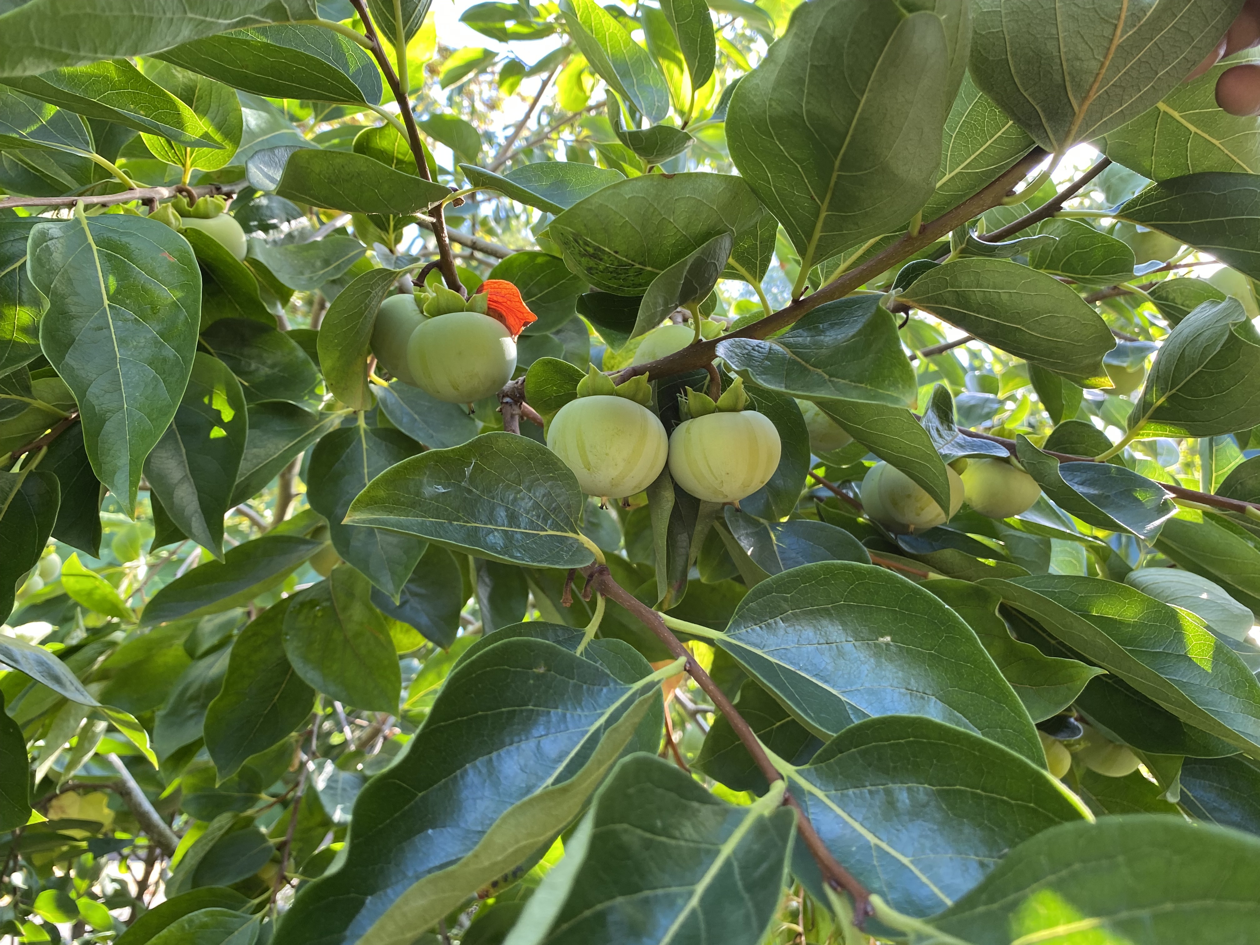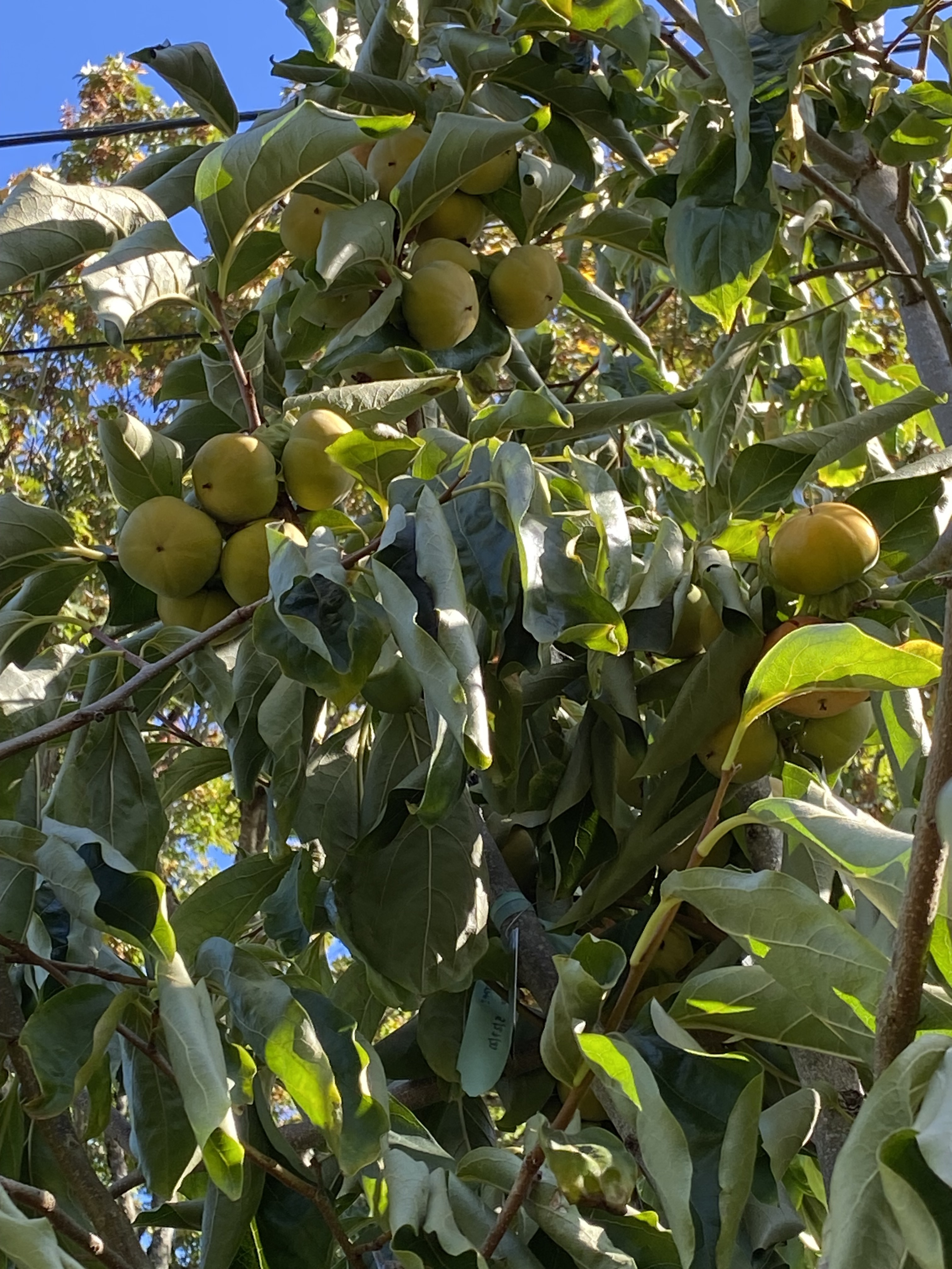 I generally don’t prune many of the lower branches off my native persimmons as long as they are at least 24" off the ground and usually the same to start with hybrids. I want to encourage lower fruiting to keep it from being crazy tall. But they often abort lower branches as the top fllls out.