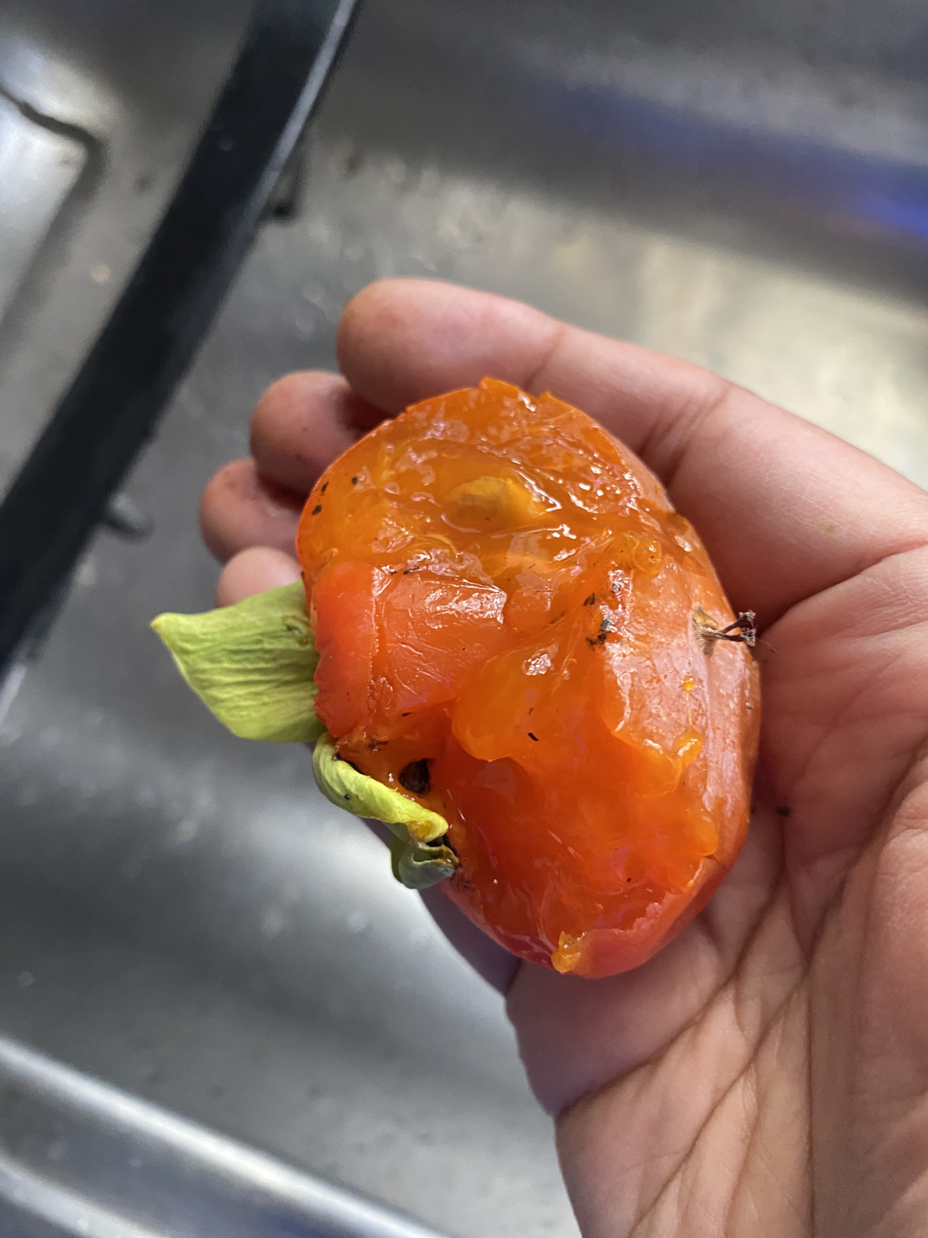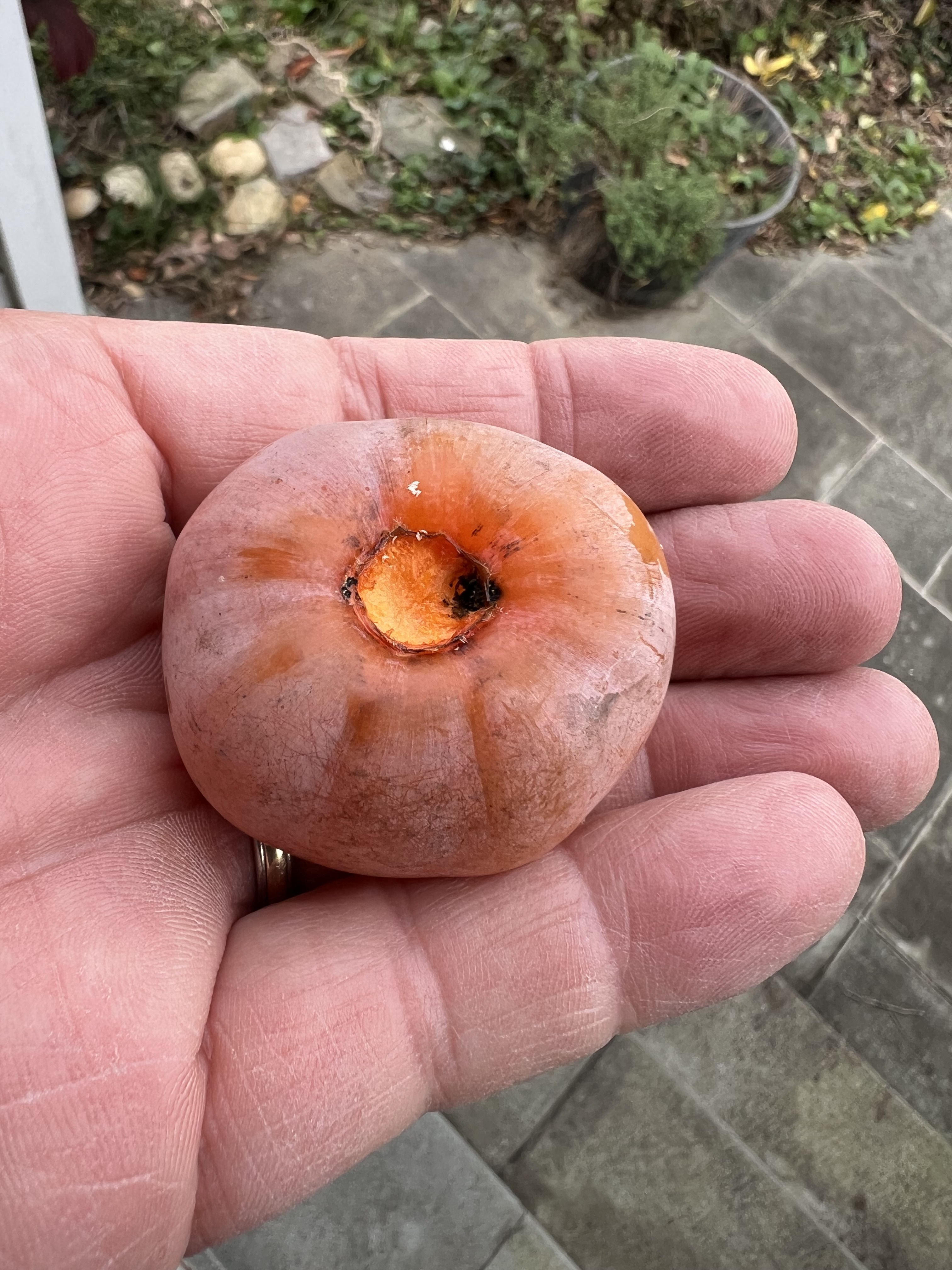 'simmons for lunch. Today I had a Ruby, which is the latest ripening of my American persimmons. A little bit smaller than most American varieties, but still delicious and nice to have it after the others have all ripened. I didn’t have them side-by-side to really compare, but I think it is sort of along the lines of 100-46 in terms of a more brown sugar taste than caramel taste to me.