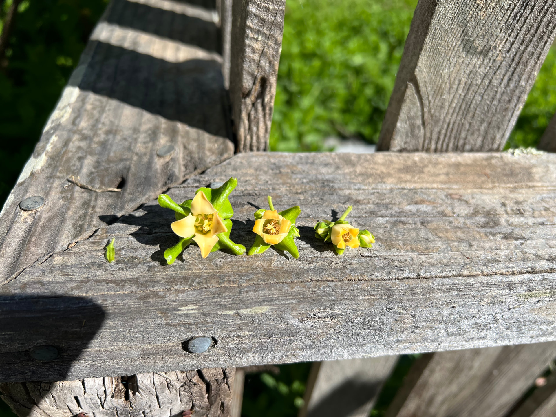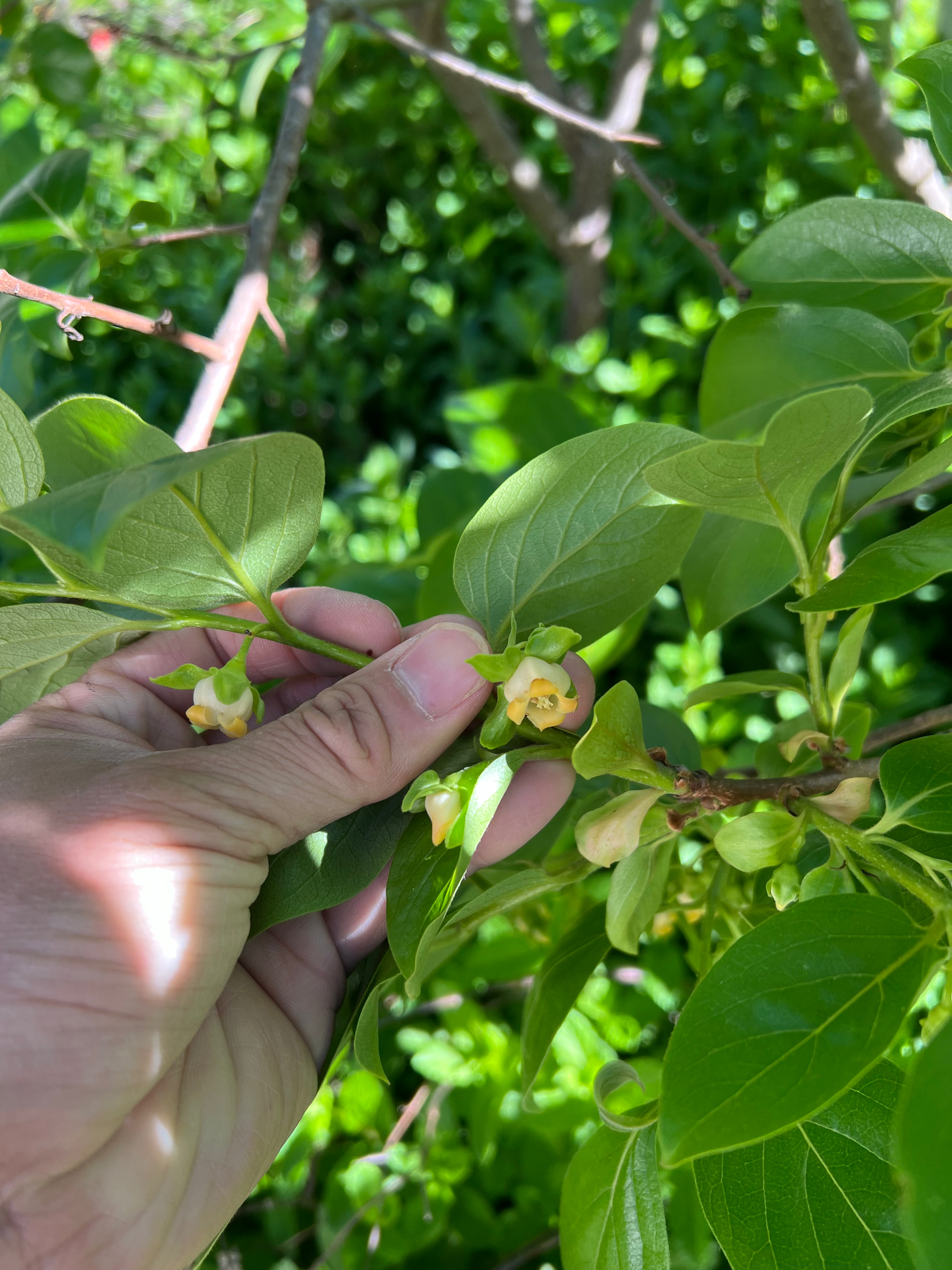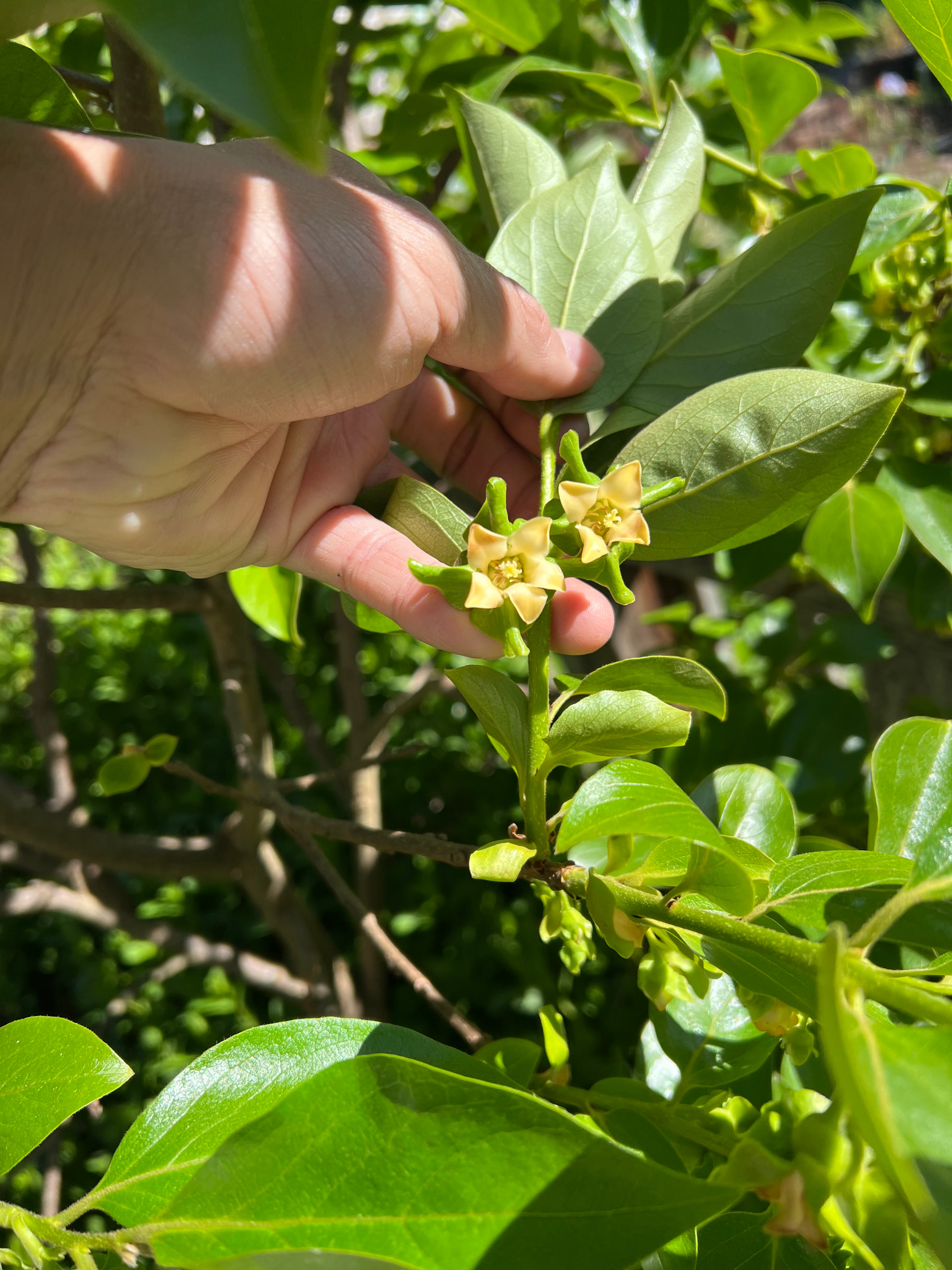 Asian persimmons are in full bloom here. @armyofda12mnkeys Since you asked me for flower comparisons a while back: