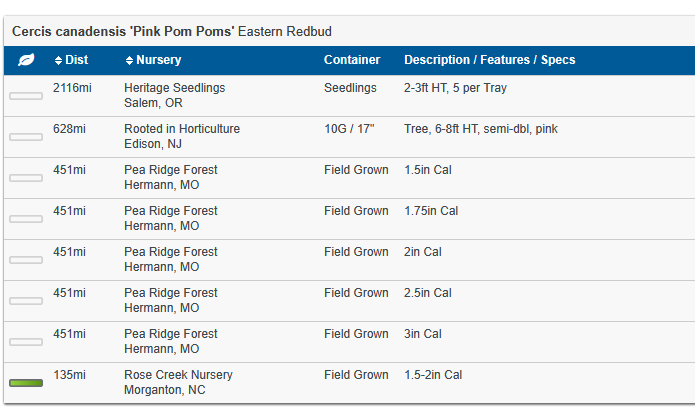 I’m trying to source the pink pom poms cultivar of redbud for my wife this spring.