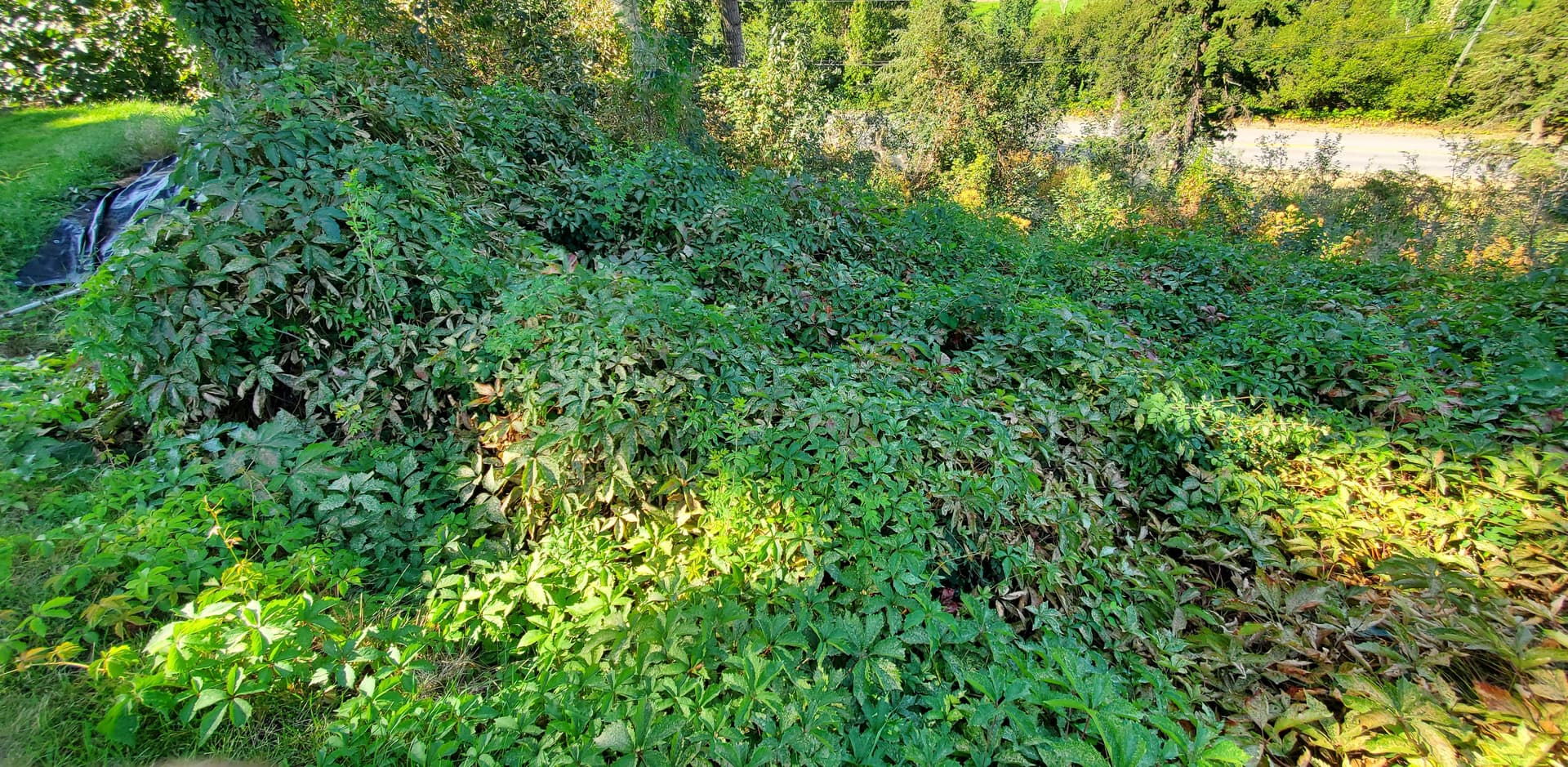 Here’s the spot I want to deal with next. Absolute mess of Virginia creeper. It’s extremely well established and has roots basically everywhere on the ground surface.