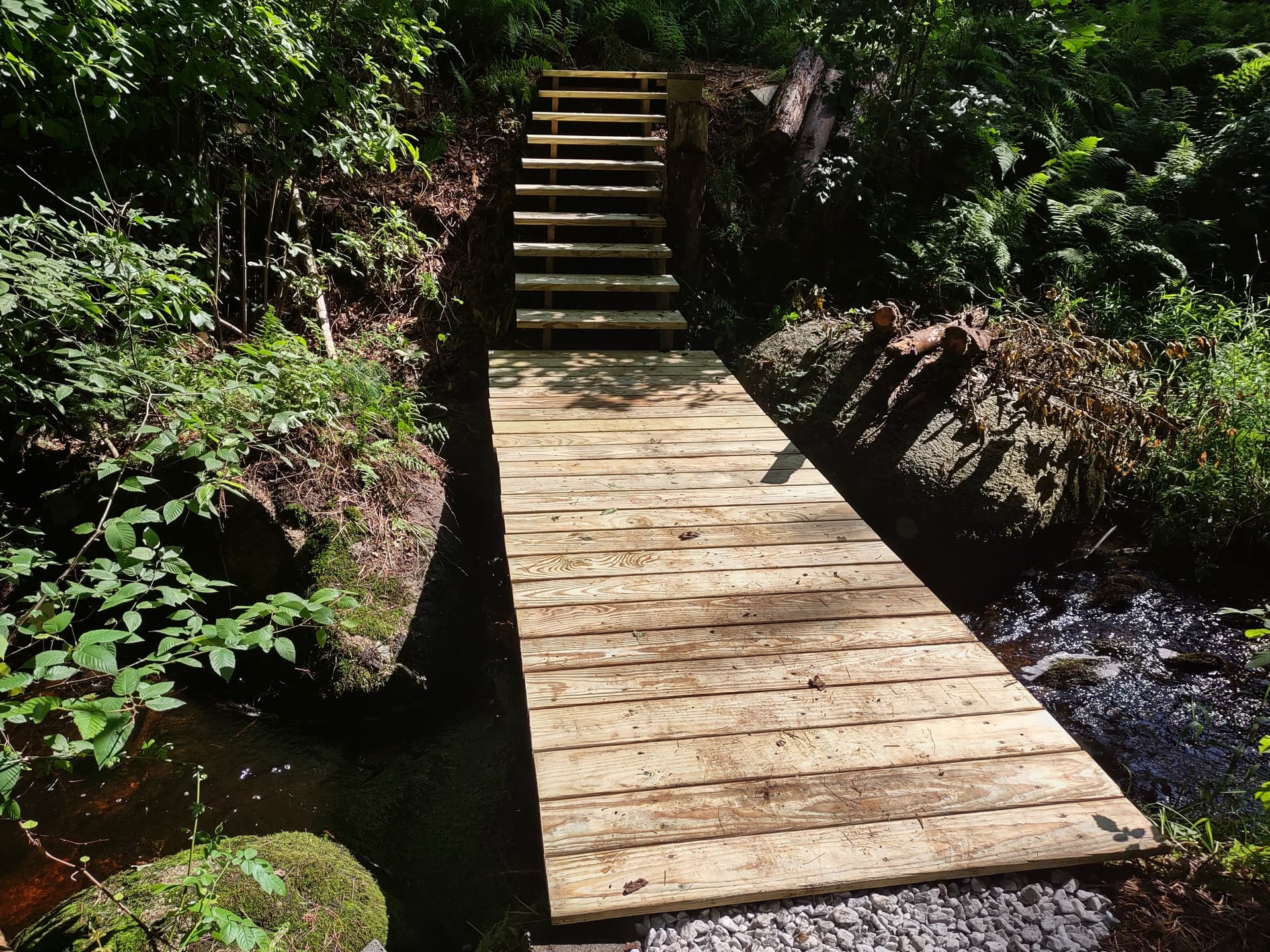 Thanks to my always go to contractor - DH! The steps are foot wide and low enough to walk comfortably even loaded with tools or materials. All PT Ground contact, I hope it will last! It is my favorite spot in the yard now!