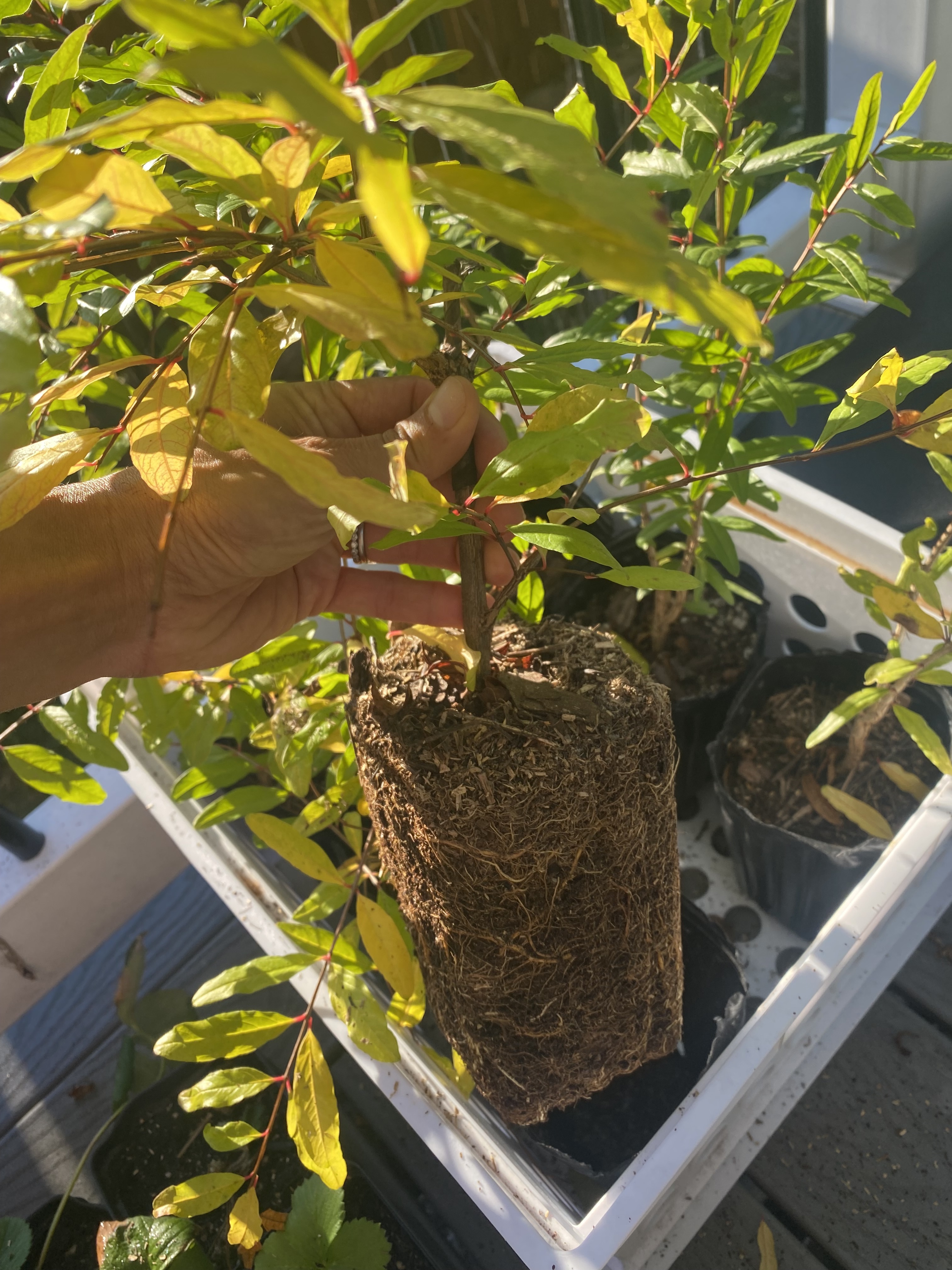 Safe to say my pomegranate cuttings and seedlings would’ve liked to have been up potted mid summer. I’m amazed at how quickly they rooted and then stunted in these containers. I moved one to 7g mid summer, and it is now 4 times bigger than these. But, at this point, I think they’ll wait until spring for new pots as none of them are cold hardy and I’ll enjoy the smaller footprint in my garage for one winter. They also started to yellow 2 weeks ago, but decided I’m not fertilizing them again this late. If anyone thinks I should, please advise.