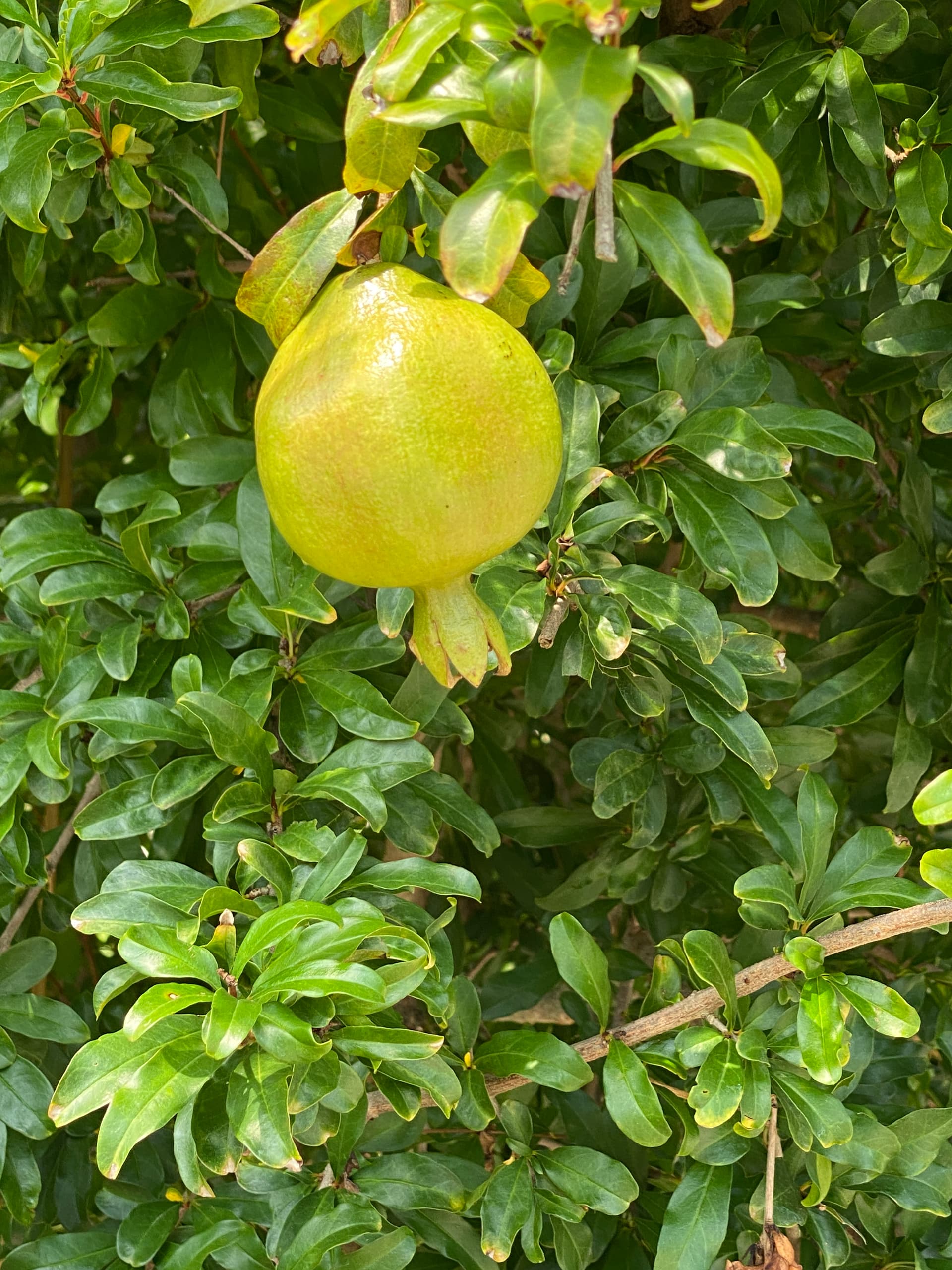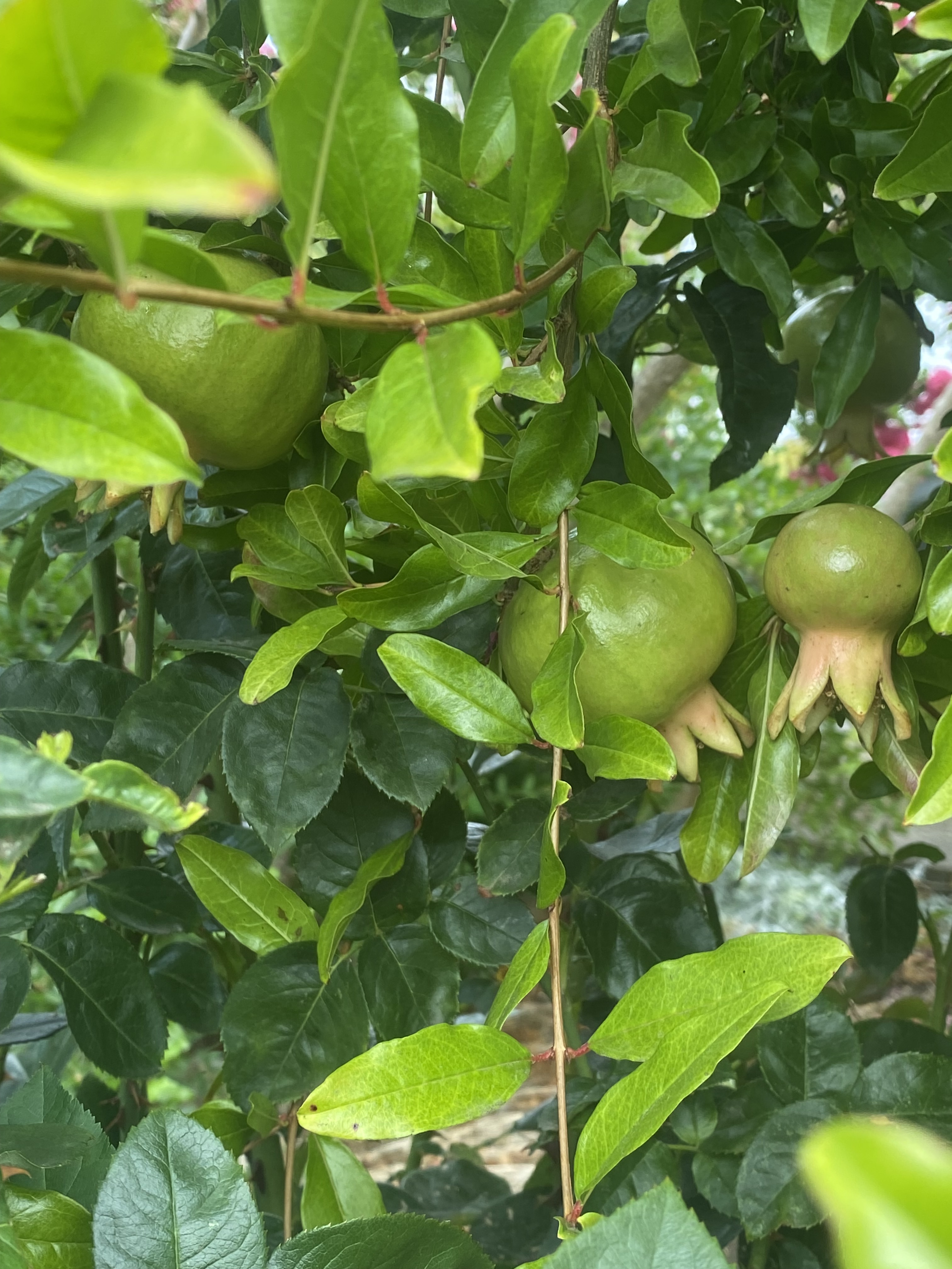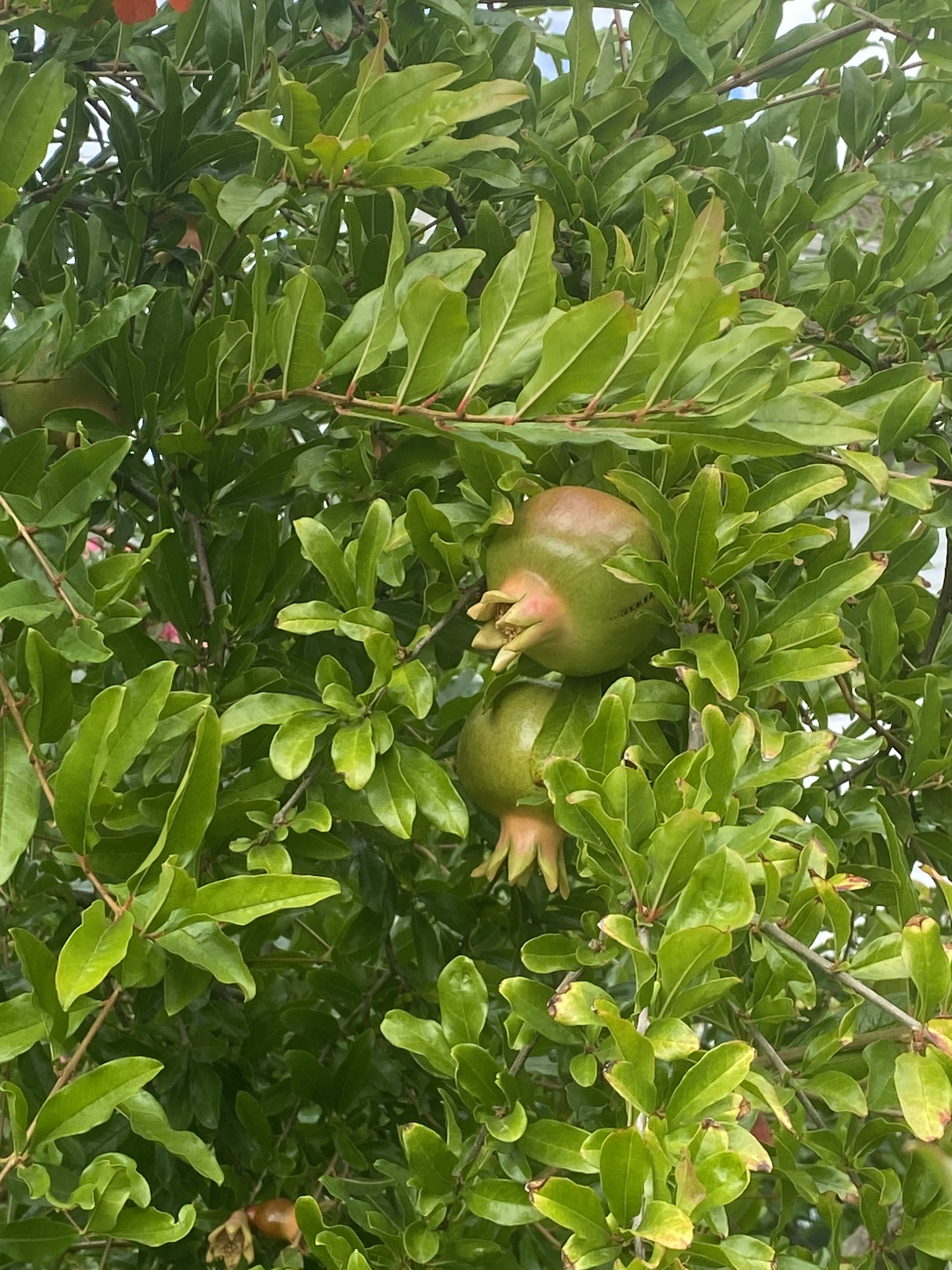 KnockOnWood!!! But so far almost all of the pomegranates are ‘almost’ fungus-free. A few black dots here and there . . . but we only have about a month and a half ? to go before they begin to ripen. Maybe most will make it to the finish line unscathed.