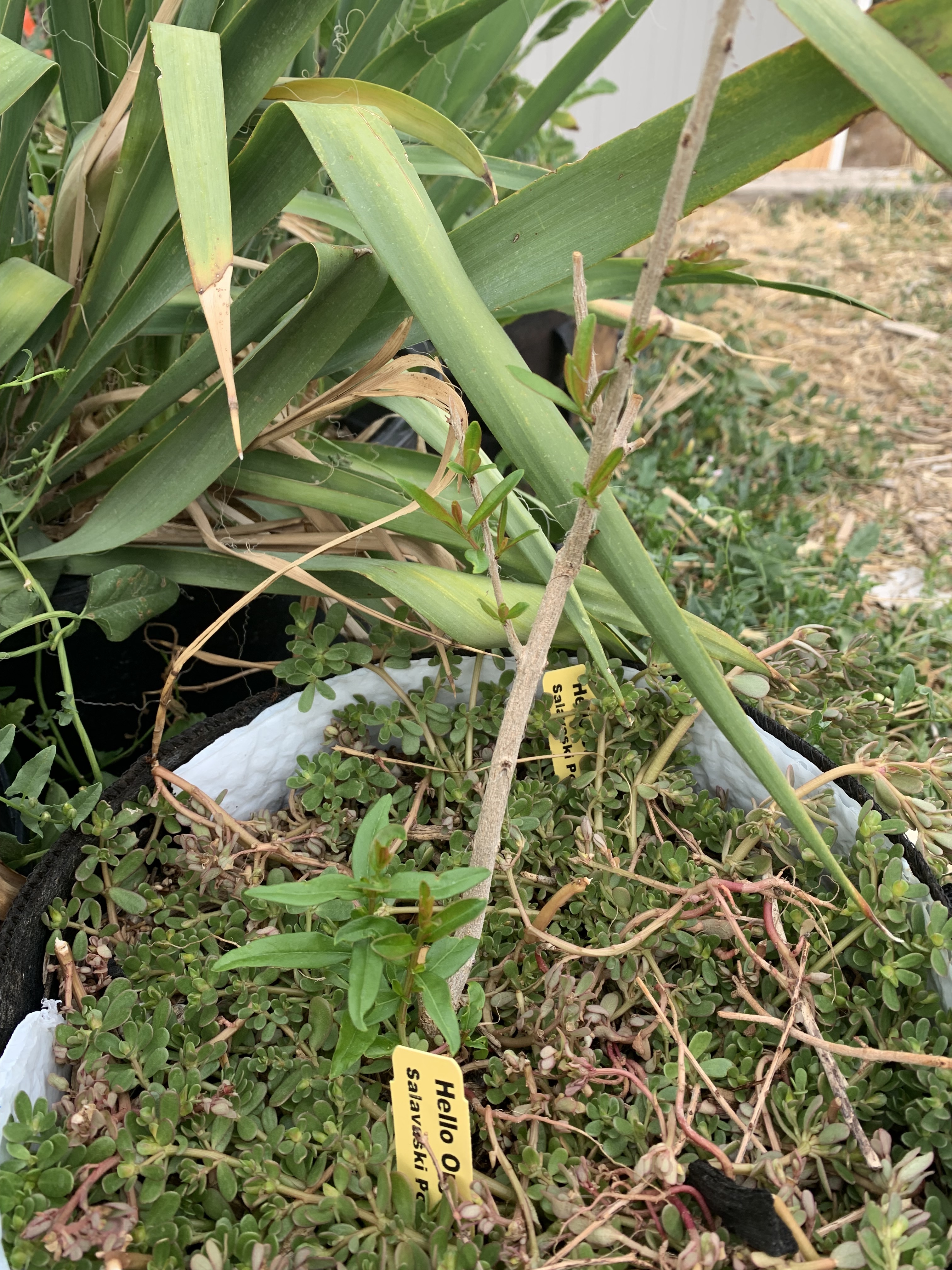 A Granada I started from a cutting. I expect I’ll have some sunburn damage. (Went a little too postal on the pruning!