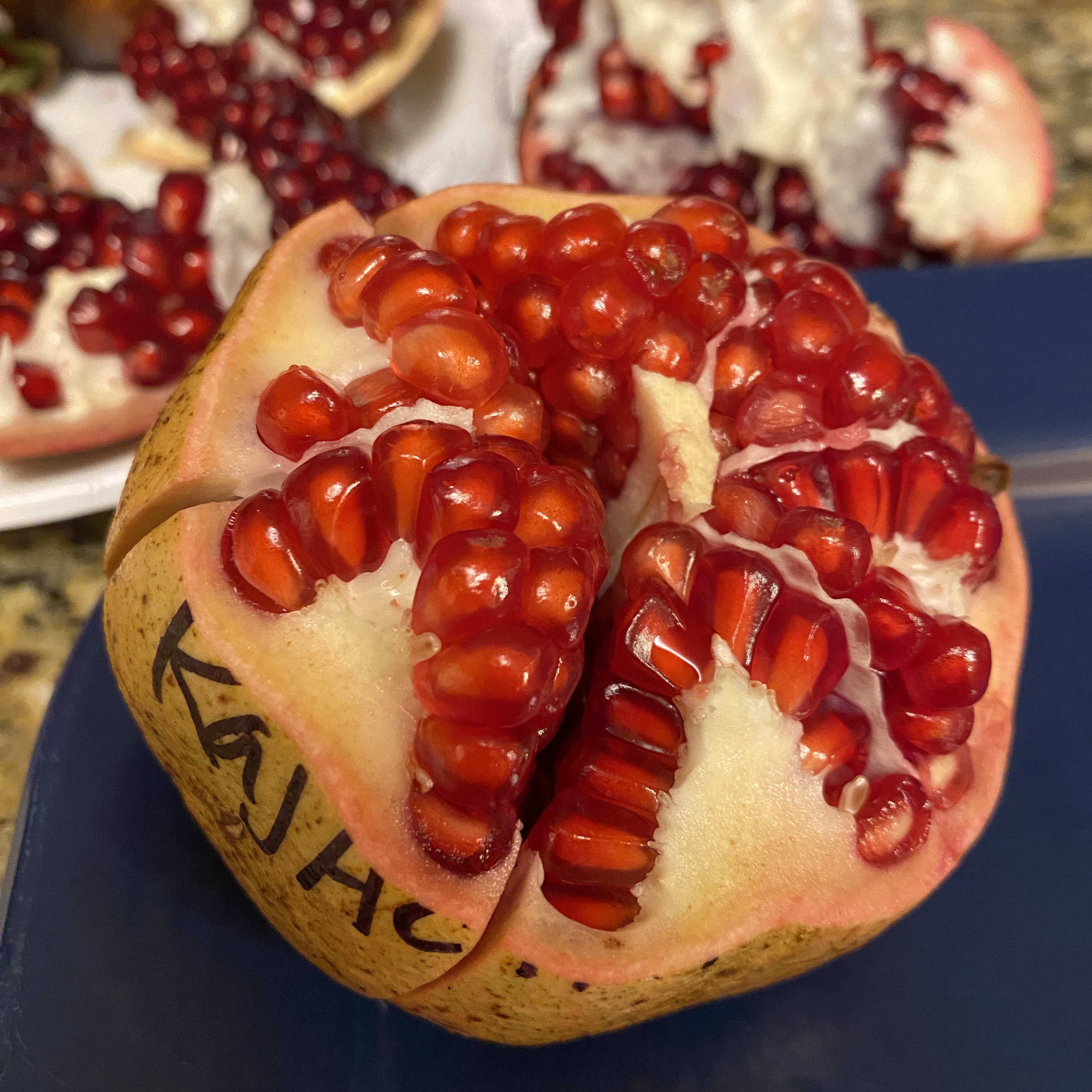 My poms are really getting ripe now. This Kaj Acik Anor is much milder, less acidic, and definitely sweeter than the Granada and others. Lighter colored arils. Very successful (for Virginia!) and I’m so pleasantly surprised!