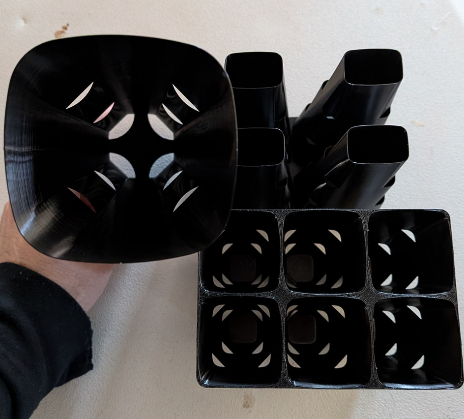 i know its still plastic but ive been designing my own version of deep cell inserts and pots for starting and growing seedlings. hopefully will be way more durable than the cheap stuff that cracks after a year: