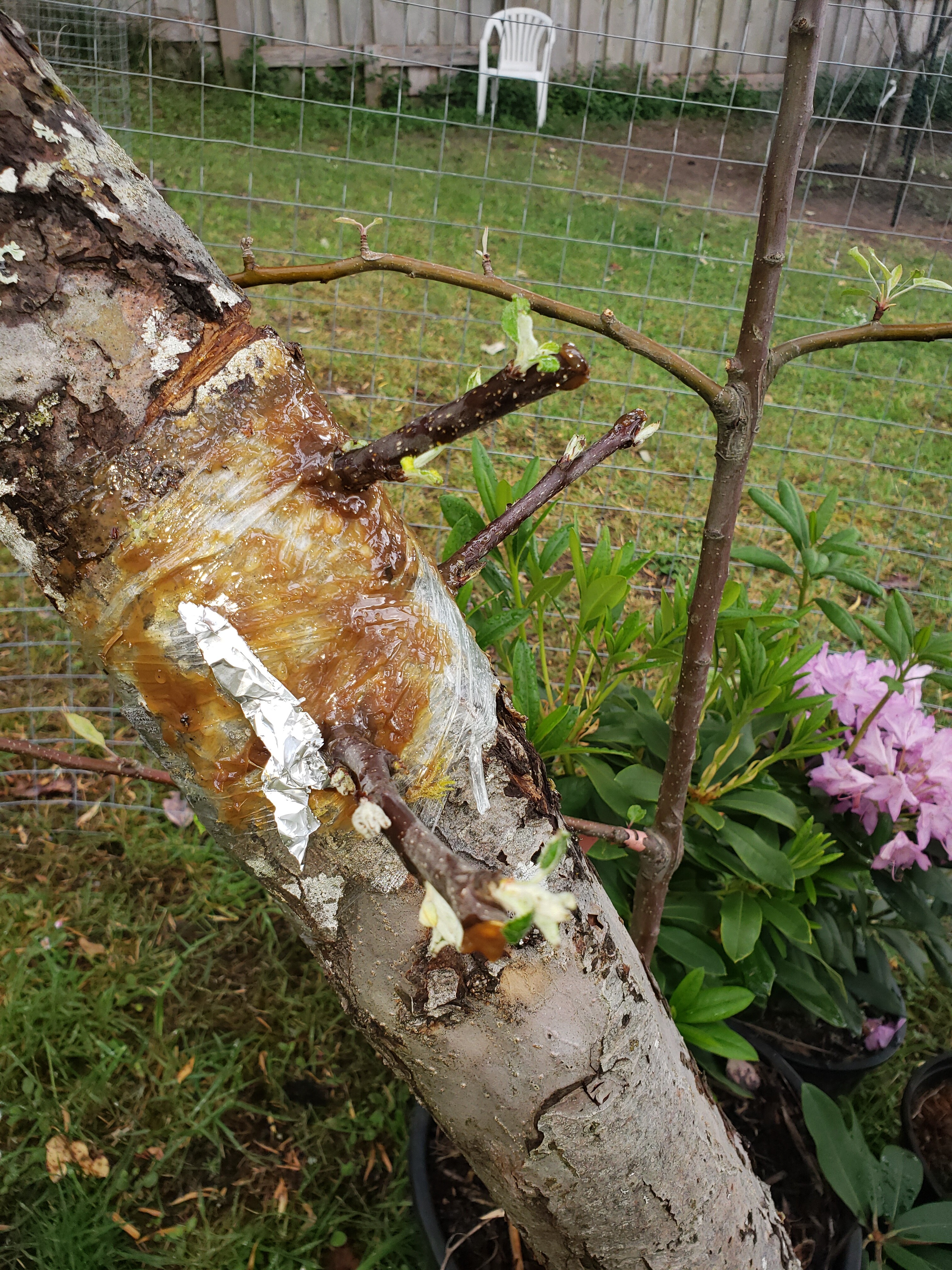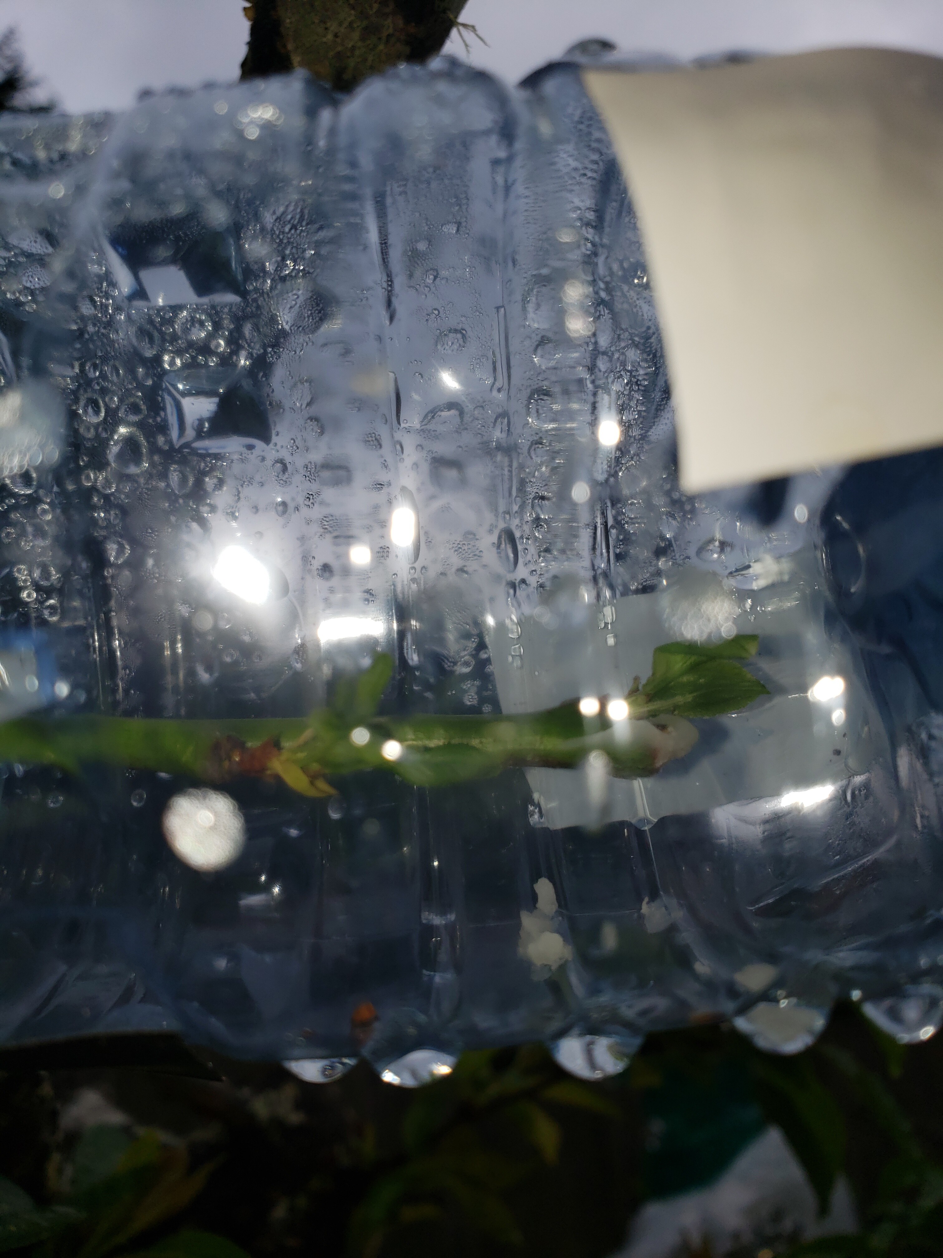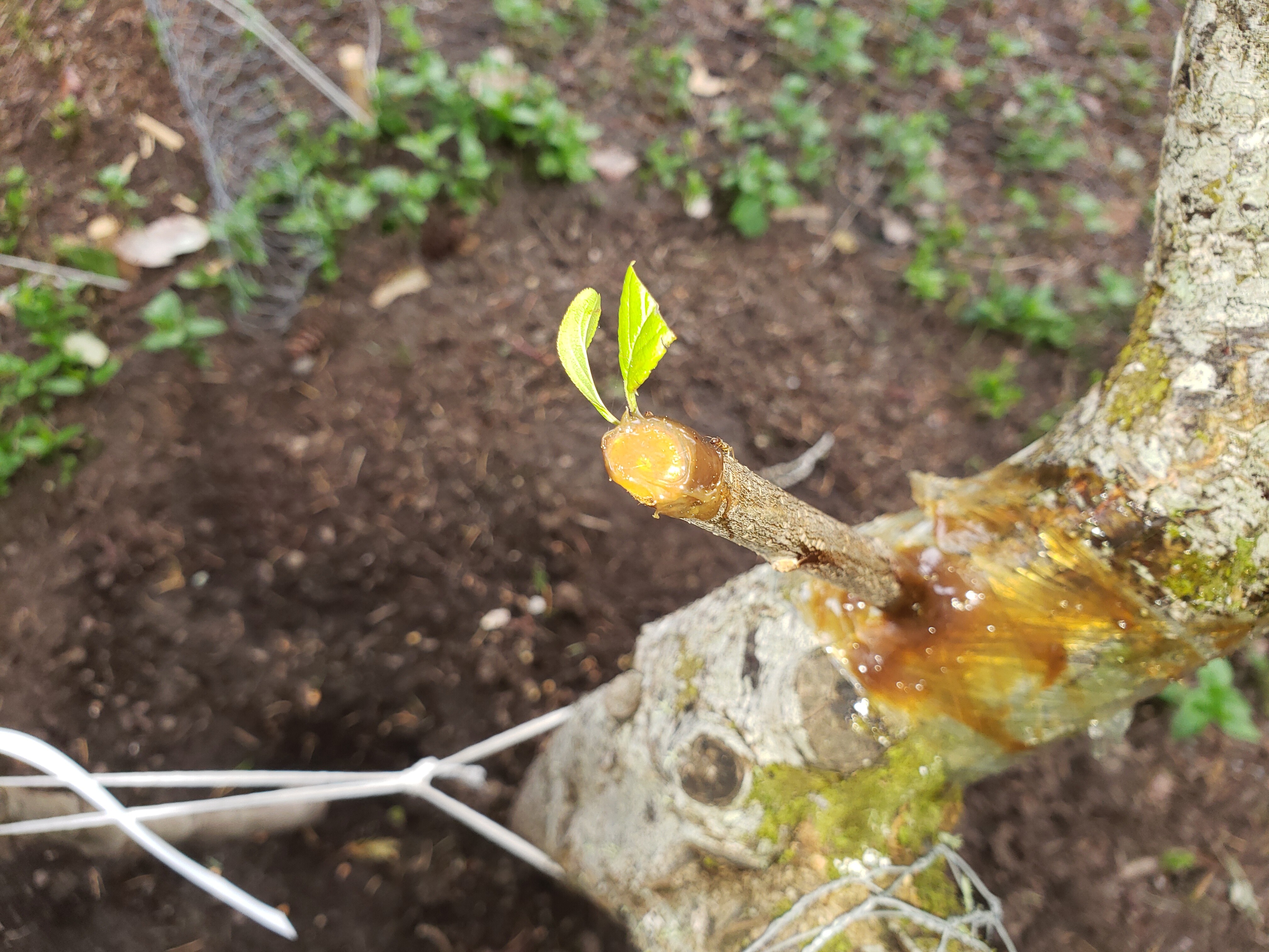 Most of the grafts I initially did with a drill seem to be doing OK. One has died that I’m not surprised about as I used green wood and it was on a very small branch that the drill went completely through. The donator Beauty plum tree was a new purchase with no hardened off wood I could spare to cut off, so I could only find green wood to use. One graft with the green wood is still alive,  but I’ve left it enclosed inside a plastic bottle to prevent desication. I doubt any of the few green wood  grafts I did will survive in the end. Worth a try though I guess.