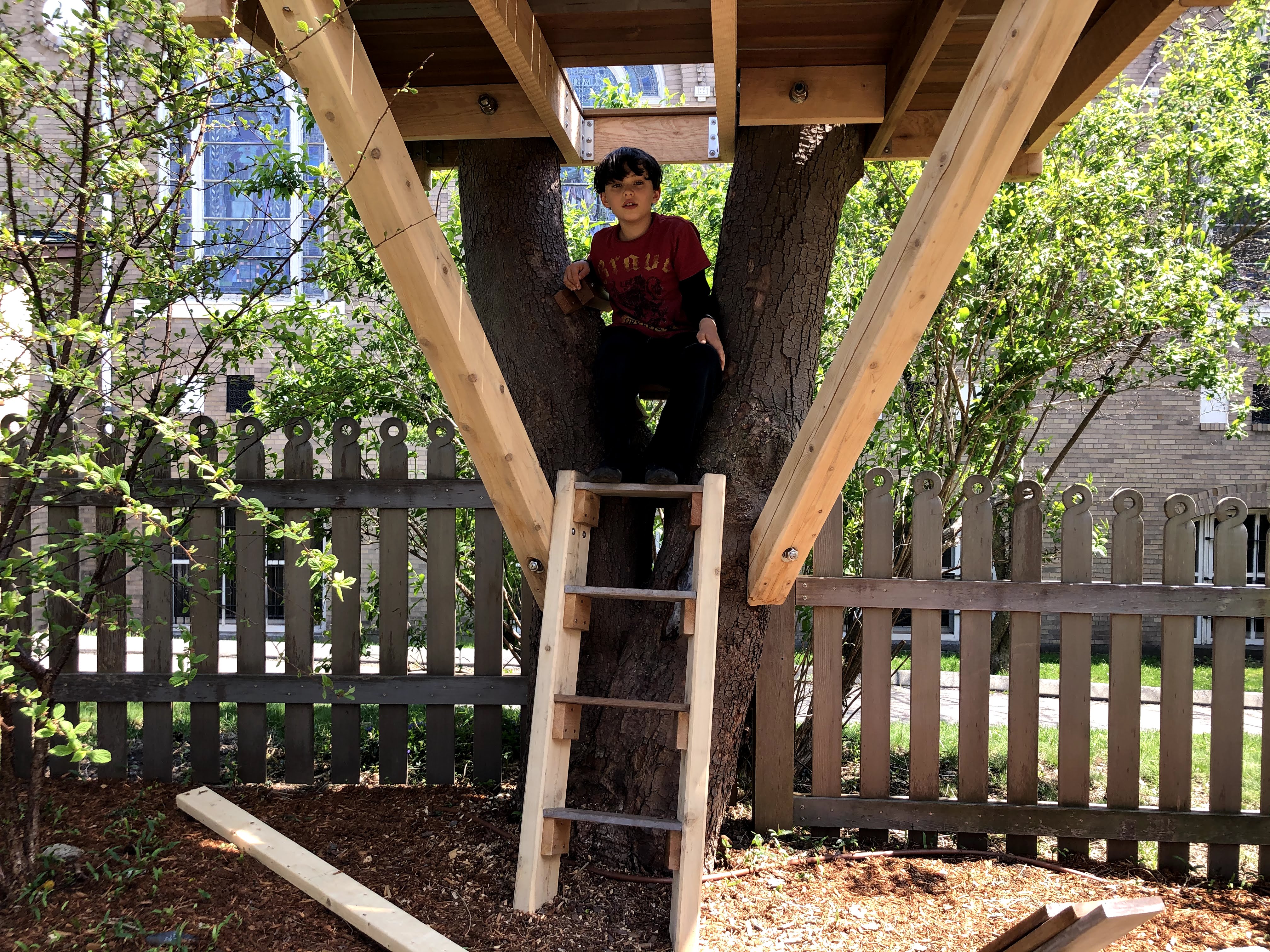 We made a little ladder and some footholds to get up into the hole between the trunks.