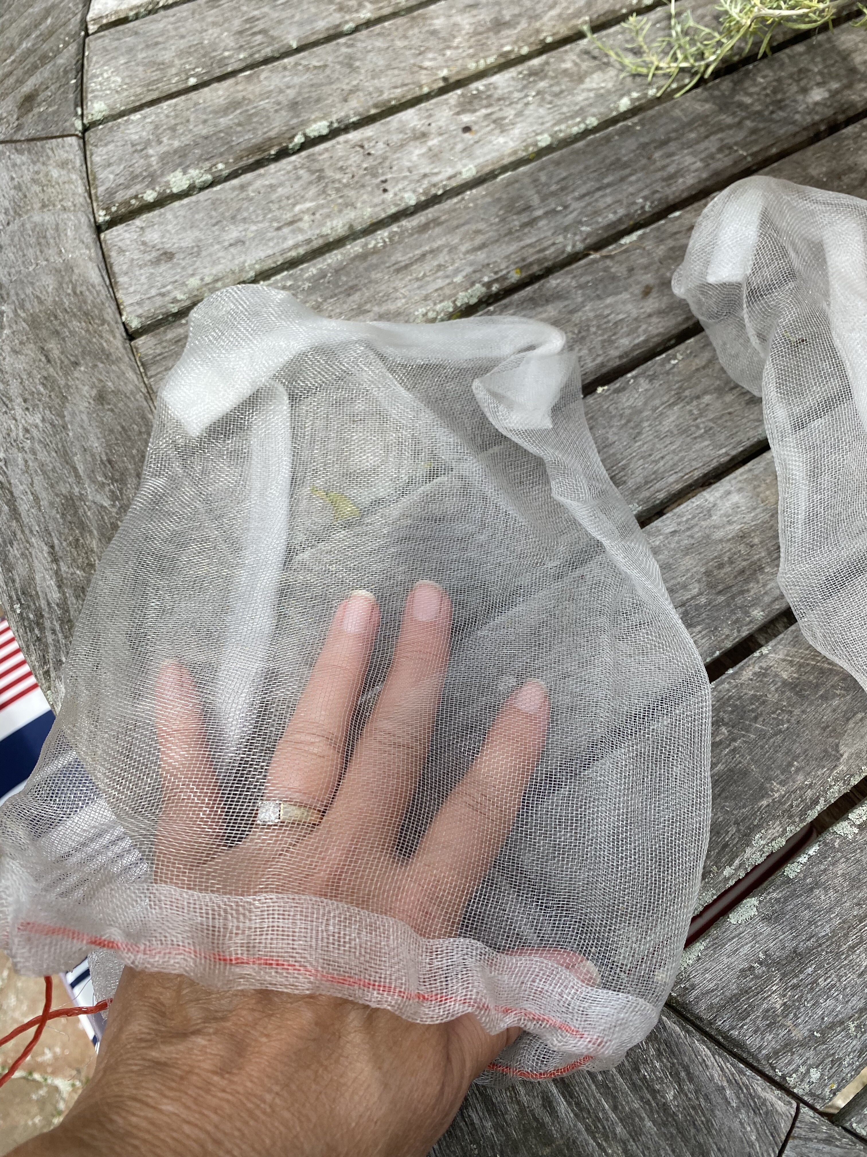 Interesting question. We have always used bird netting to protect our berries. The stuff catches on everything and it is a real pain. This year we purchased white tulle from hobby Libby and it is my new favorite thing to use. Very thin and easy to put on and take off. I tied all my elderberry clusters with individual “hats”. Ha. I just tied it underneath like a bonnet. It held perfectly and protected from all the birds. Good luck.