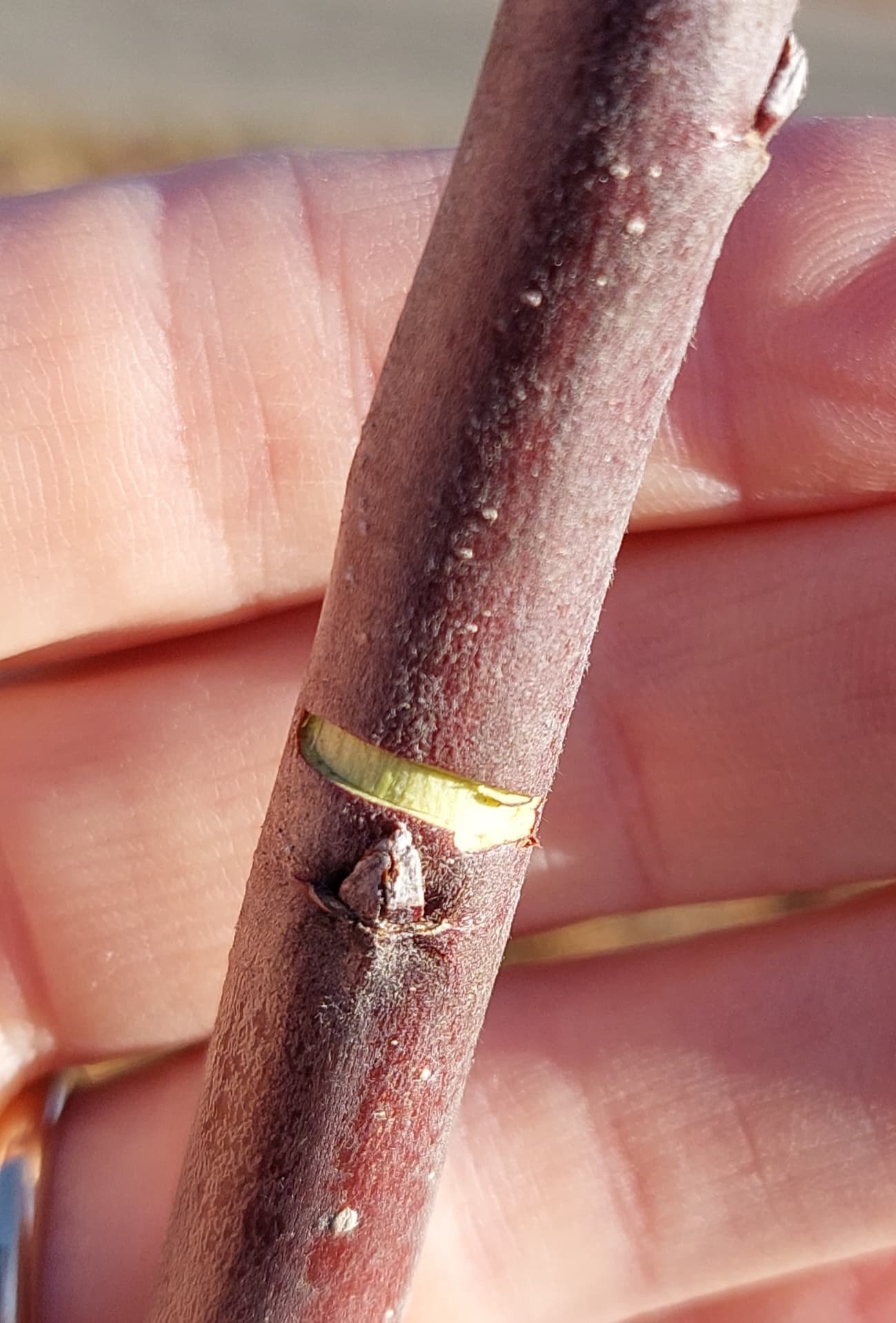 I cut a kerf with a pruning saw blade or my knife or even my nippers, although that’s clumsy. Just remove the bark right down to the wood and leave a gap of about 1/8" right above the bud. I make sure the gap overhangs the bud or branch by a fair amount -about as much overhang on each side as the bud or branch is wide.