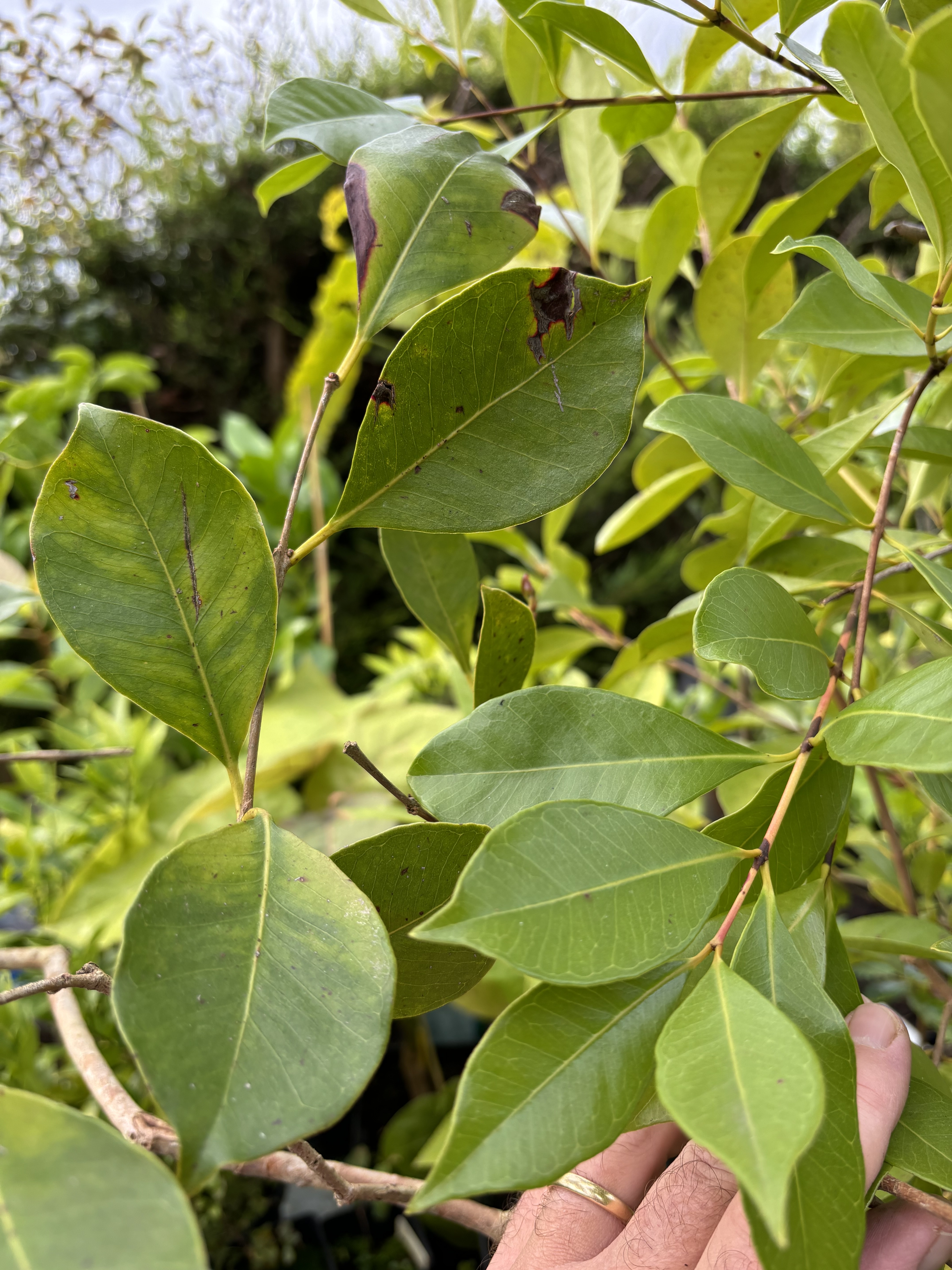 Anyway, yellow cattleianum has been very easy for me so long as I keep the pots very well watered in summer (we get lots of summer rain, but not enough for these thirsty little plants), and I’ll be testing it in ground this winter, but I’ll be shocked if I don’t have to protect it at least some in order to get fruits. Will longipetiolatum do better? We’ll find out eventually.