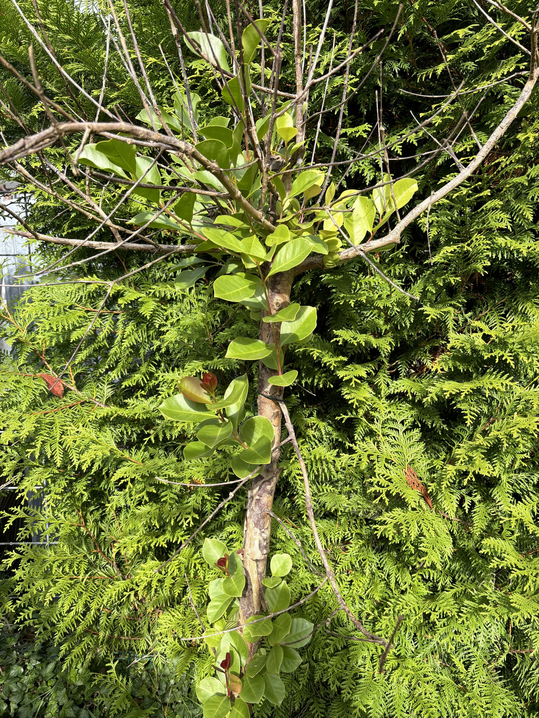And even with winter cold, I’m not sure my winters are similar to yours. Even though we had 0 F temperatures here a few years ago, it’s pretty uncommon for me to have daytime temperatures that don’t go above 0 C. Usually, the severe cold only happens at night, and then mostly very late, just before morning. Then the sun comes up and, since I’m at 35 N (same as Tunisia, Crete, and Iraq) the warm winter sunshine heats up the air again. So thicker stems and evergreen plants that are simply larger and store more heat can handle much lower minimum temperatures here, since those minimums are almost always very short. And of course, in most winters the ground does not freeze.