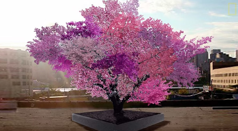 You need to look at ornamental crab apples. Most apples flower white. Some start red but fade to white. Red fleshed apples flowers tend to stay red i believe. Overall there is not that much variation in apple to get a tree like the one below. Which is a prunus. But if anyone would know for sure I would ask @JoeReal
