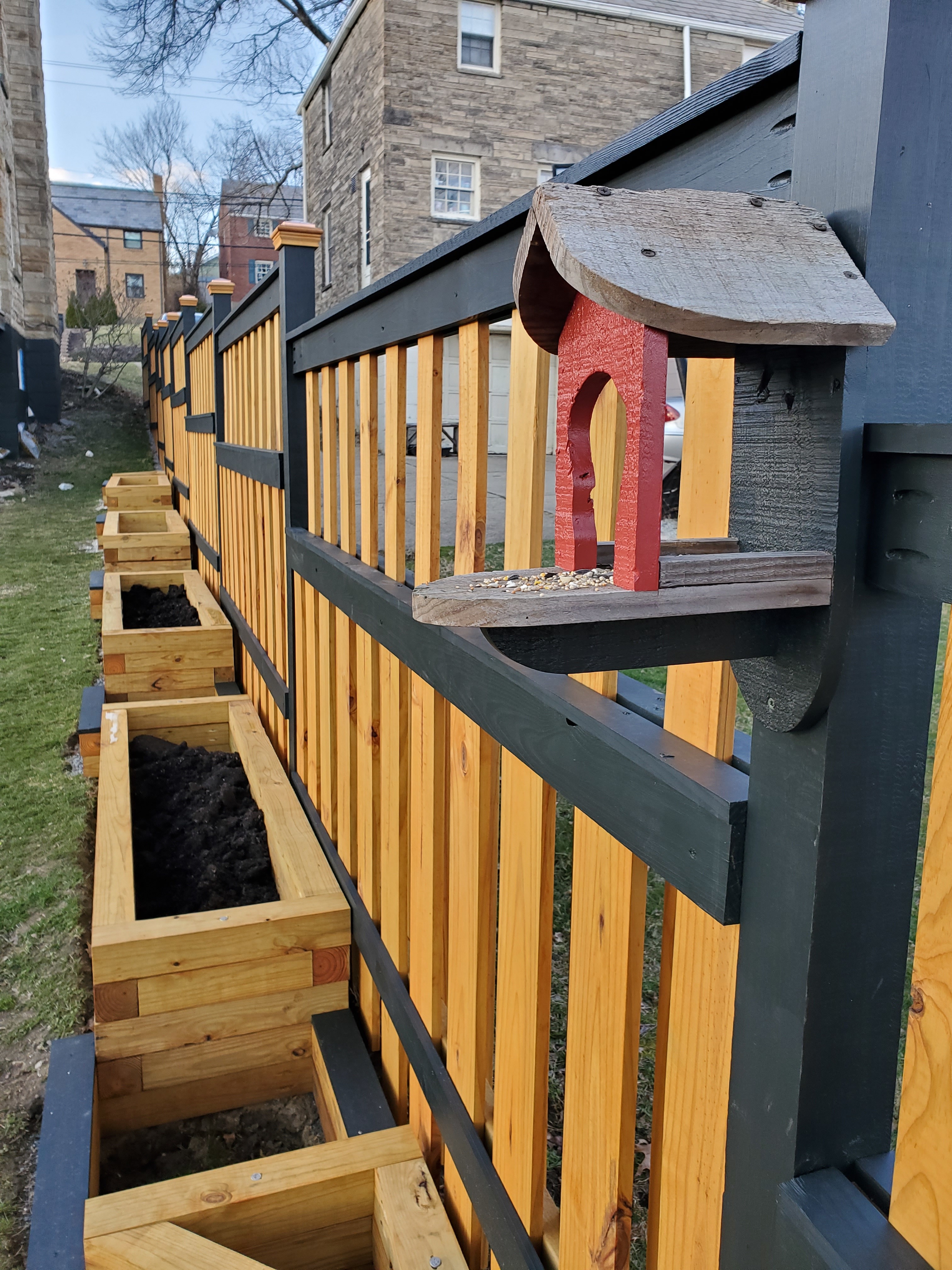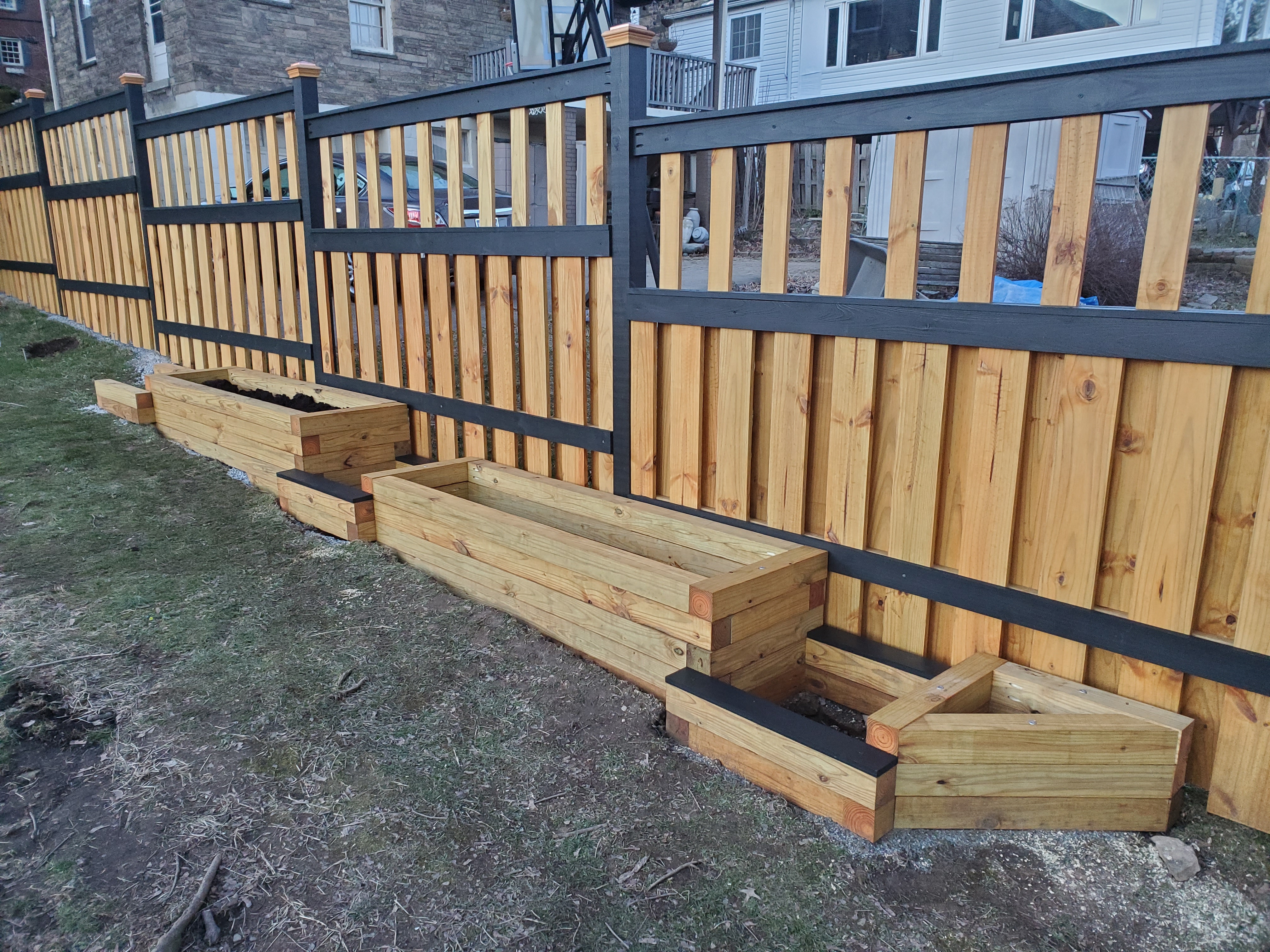 Just pieces of 1x4 treated lumber painted black, to tie it in with the fence. A little eyeliner with no structural purpose.