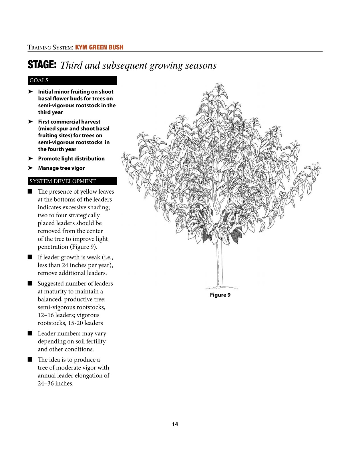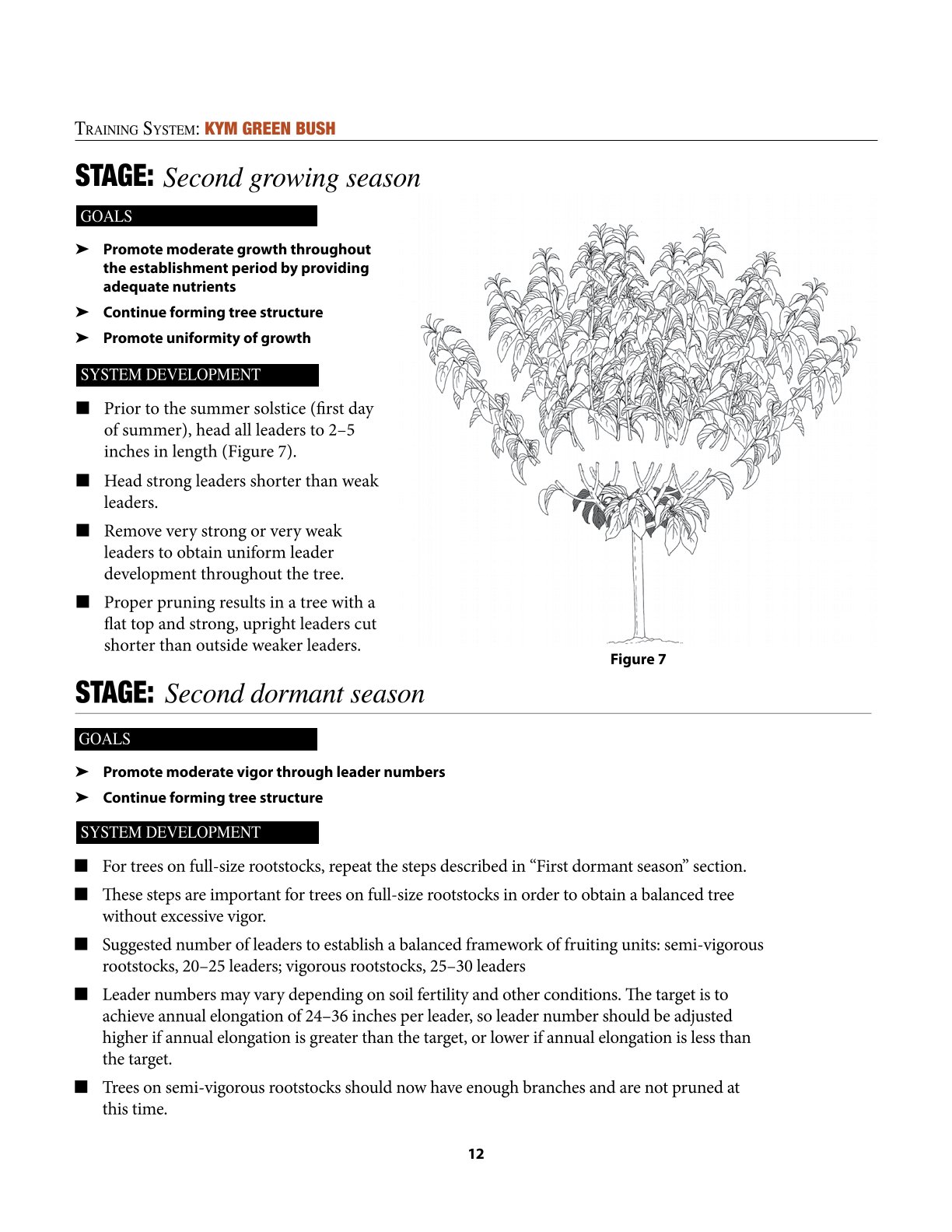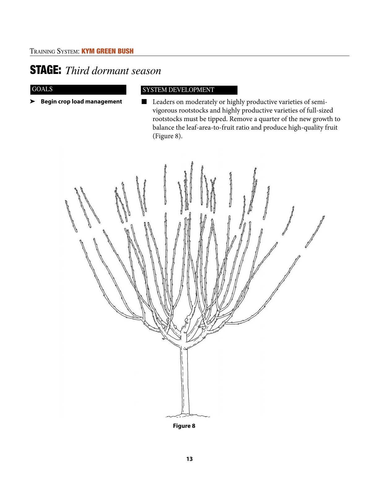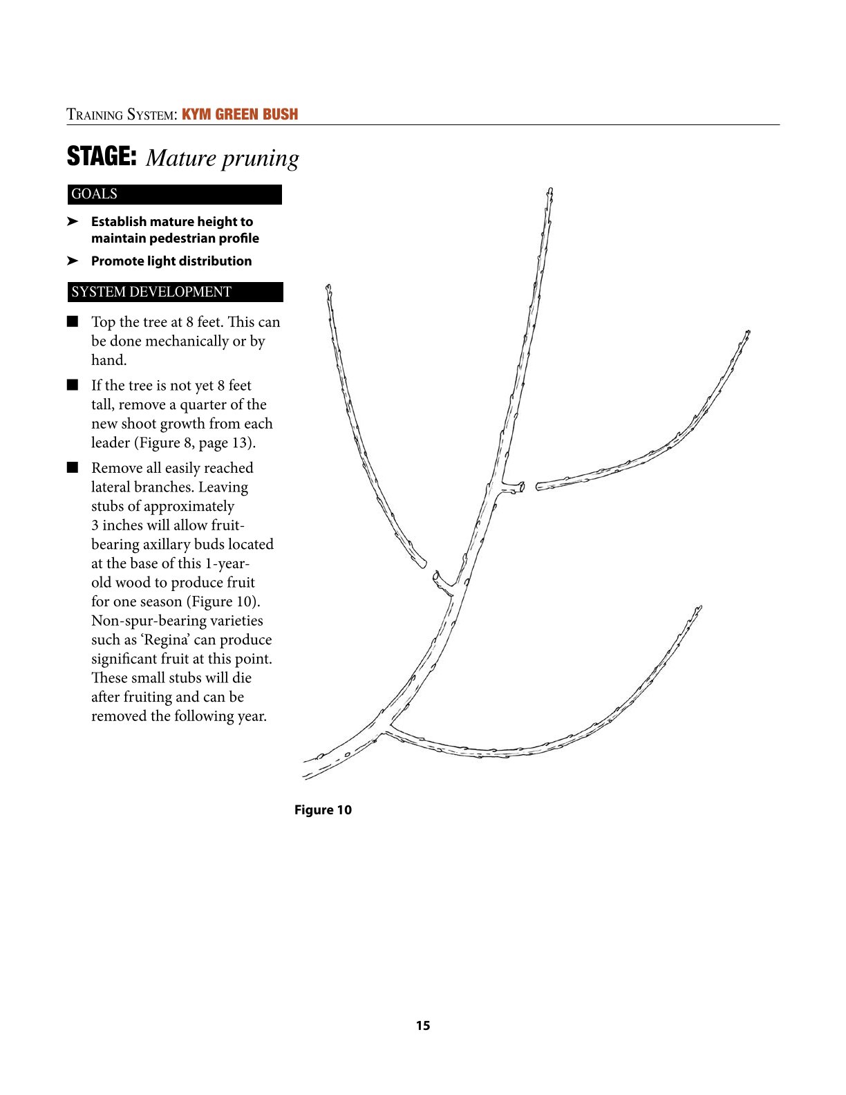 I’m not entirely satisfied with the video on the KGB training system, as it shows excessively long pruning cuts at the first, second, and third levels (like in a Spanish Bush system).