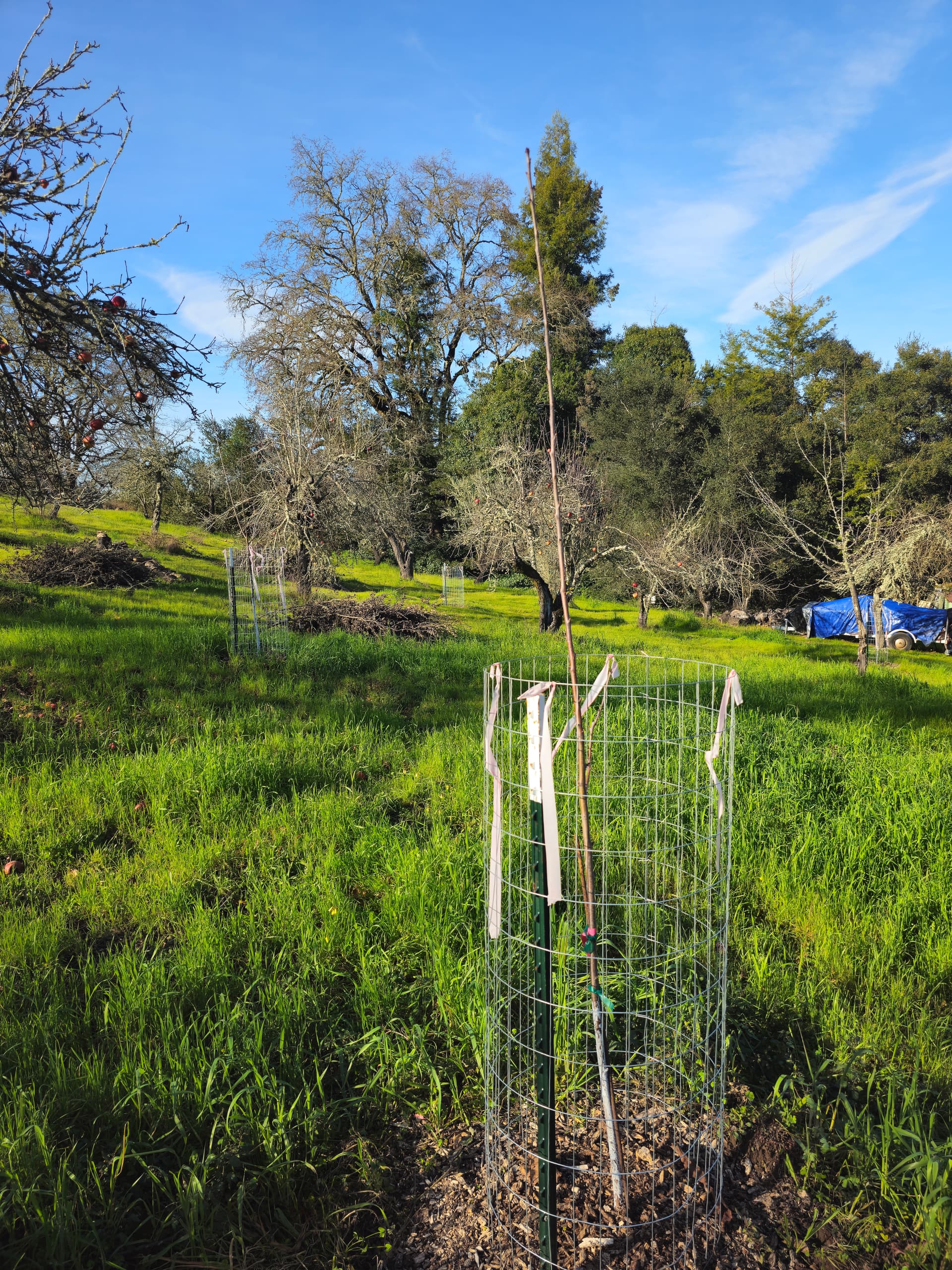 Unfortunately, the orchard is disked annually so I can’t put electric fences out there in the middle without problems… they drive so carelessly I lost a 6 year old peach tree a fews years back to them running it over. ![]()