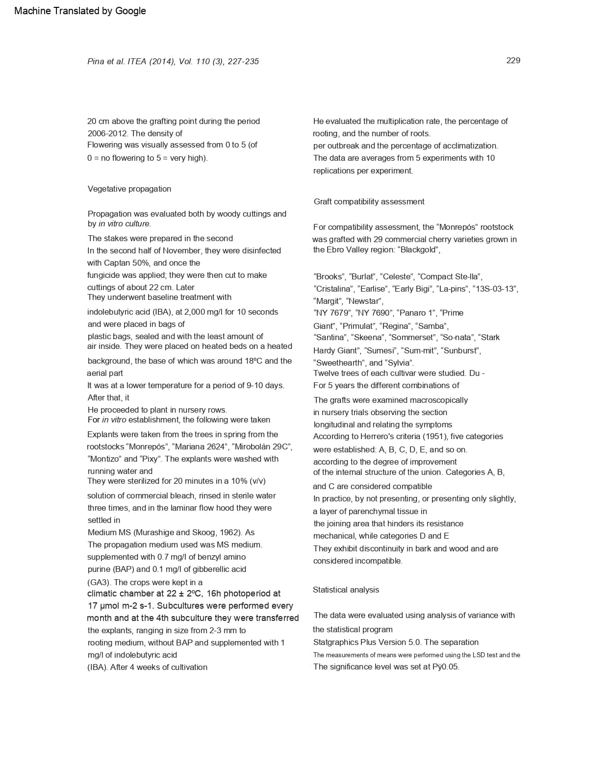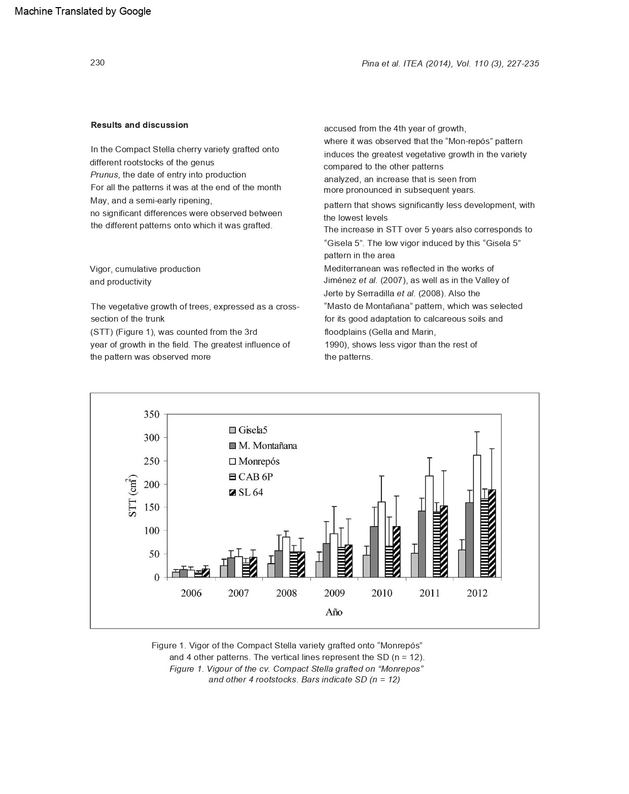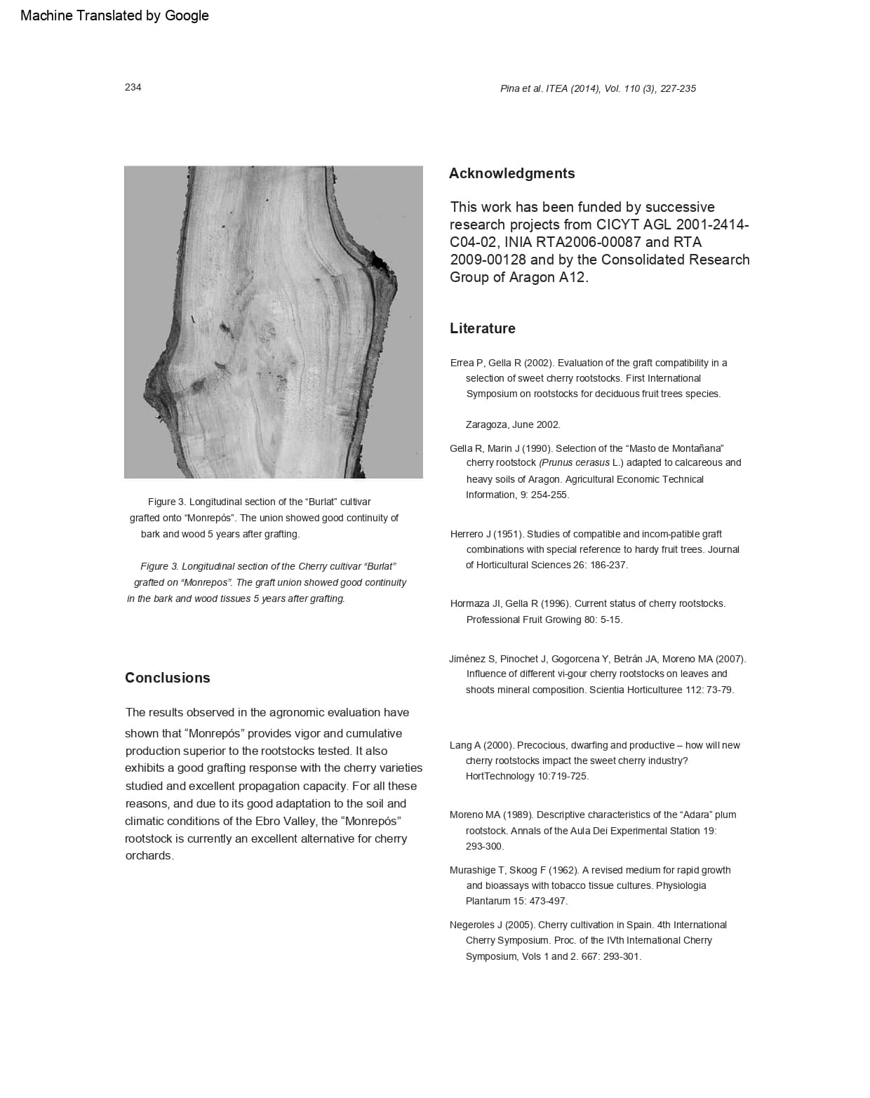 Look at this image; it’s the Burlat cherry variety grafted onto Monrepós rootstock, and as you can see, there’s no difference in thickness at the graft union. However, Adara has problems in that regard.