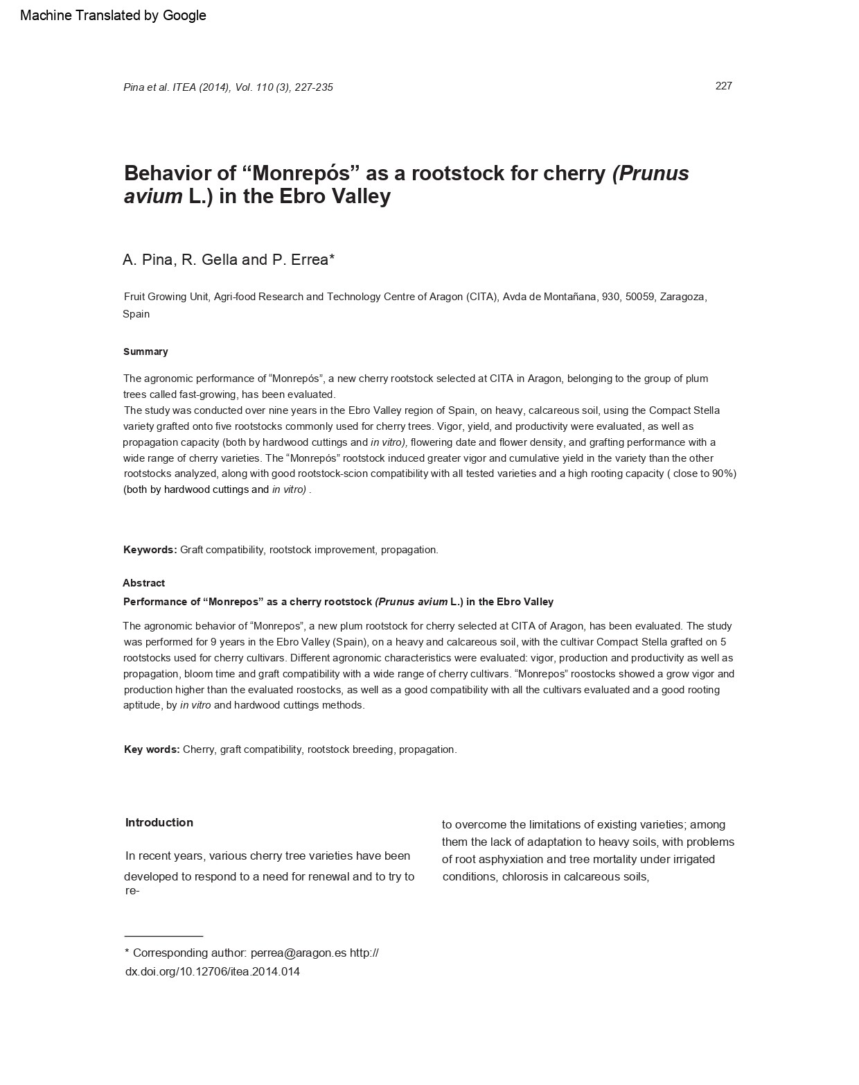 I’m translating a document for you about a study on Monrepós conducted by CITA in Aragon.