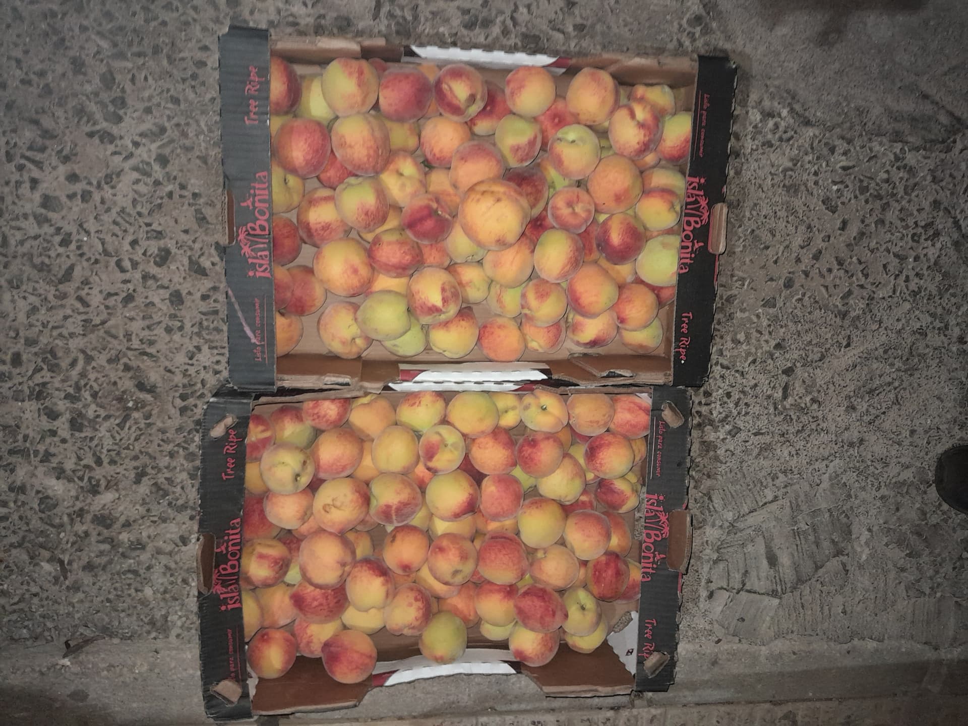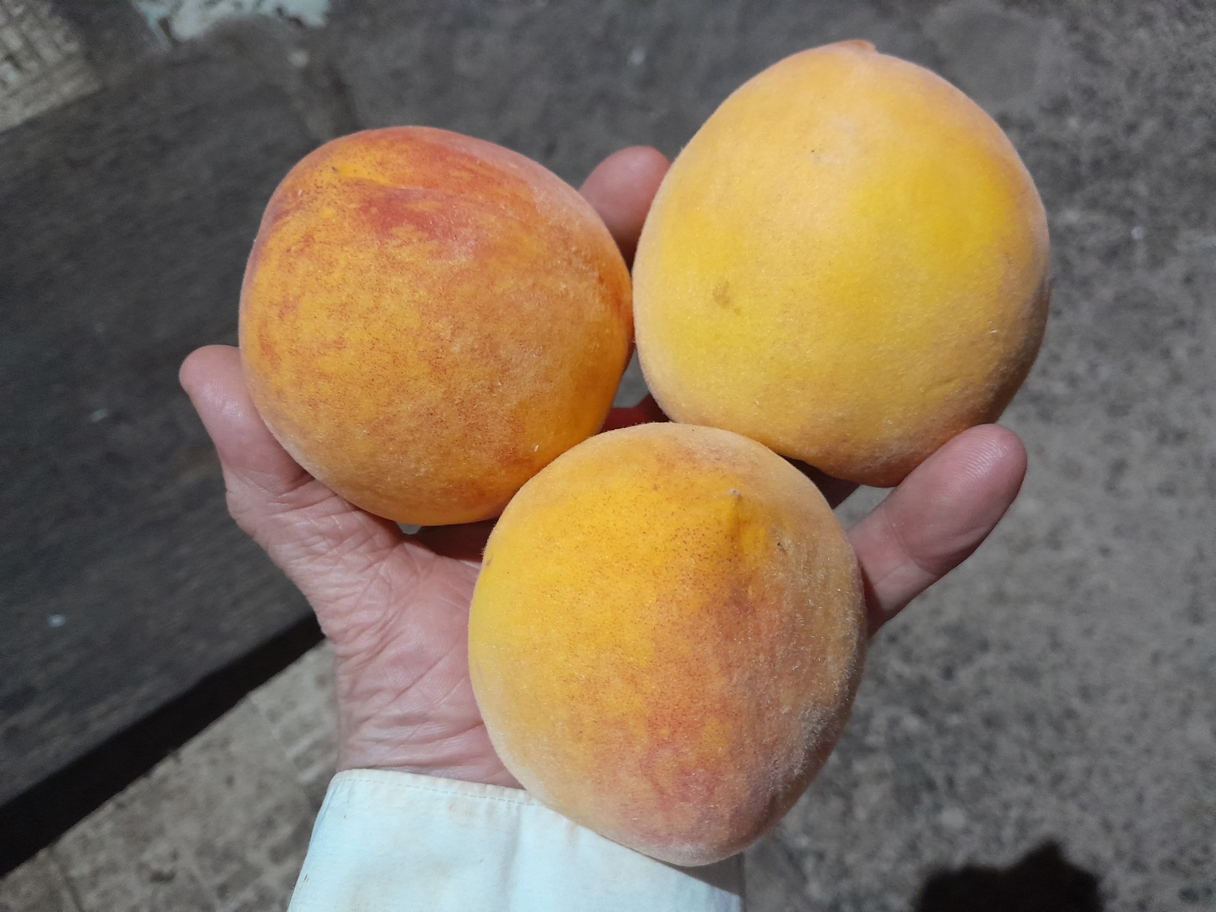 These are two varieties of Pavias ( Cling peach ) harvested this afternoon