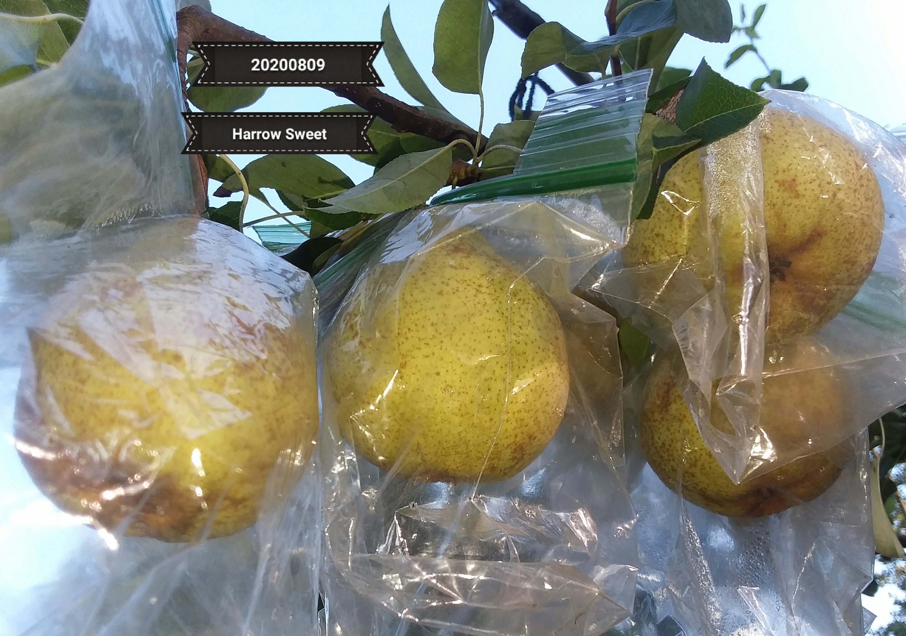 Several of the Korean Giant are pushing the sandwich bags open. I had a few old one quart bags so I replaced them. The last picture is several Harrow Sweet very close together. These all appear to be doing well inside the bags. This tree is just starting to fruit so I left all the fruit I could in hopes to get it to slow down and fruit more. Extra support was required.
