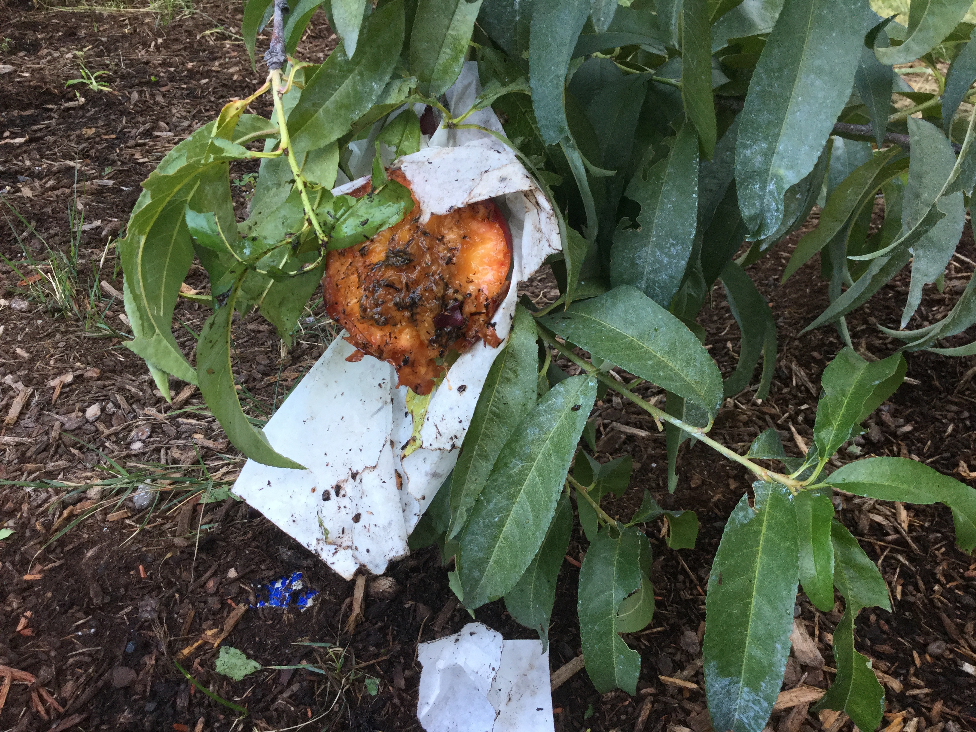 I hope I can answer someone @anne whether or not clemson bag protect against rodents. Happened last night so my bet is on a raccoon or an opossum. This nectarine is low to the ground. No need to climb up the tree.