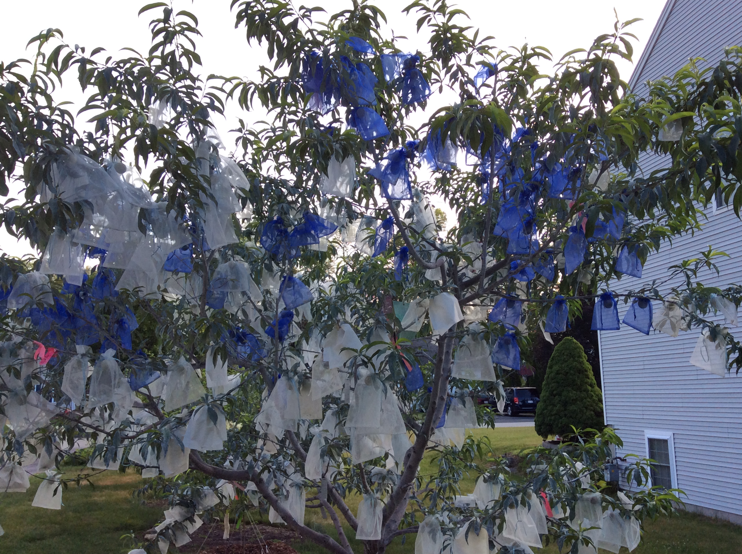 Unfortunately, squirrels can smell ripe peaches and organza bags are no match to them. I did put tougher bags that @patrick recommended. These bags may put up fight against squirrels. We’ll see.